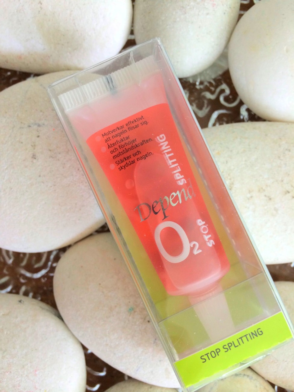 Innovationen i DEPENDS nagelserie är att lacket släpper genom 30% mer syre till nageln (jämfört med ett genomsnitt av marknaden). Detta, i kombination med vårdande ingredienser som vitamin E, panthenol och sheasmör, har skapat ett brett sortiment som ger en bättre nagelkvalitet. Serien är uppdelad i fem olika kategorier:
