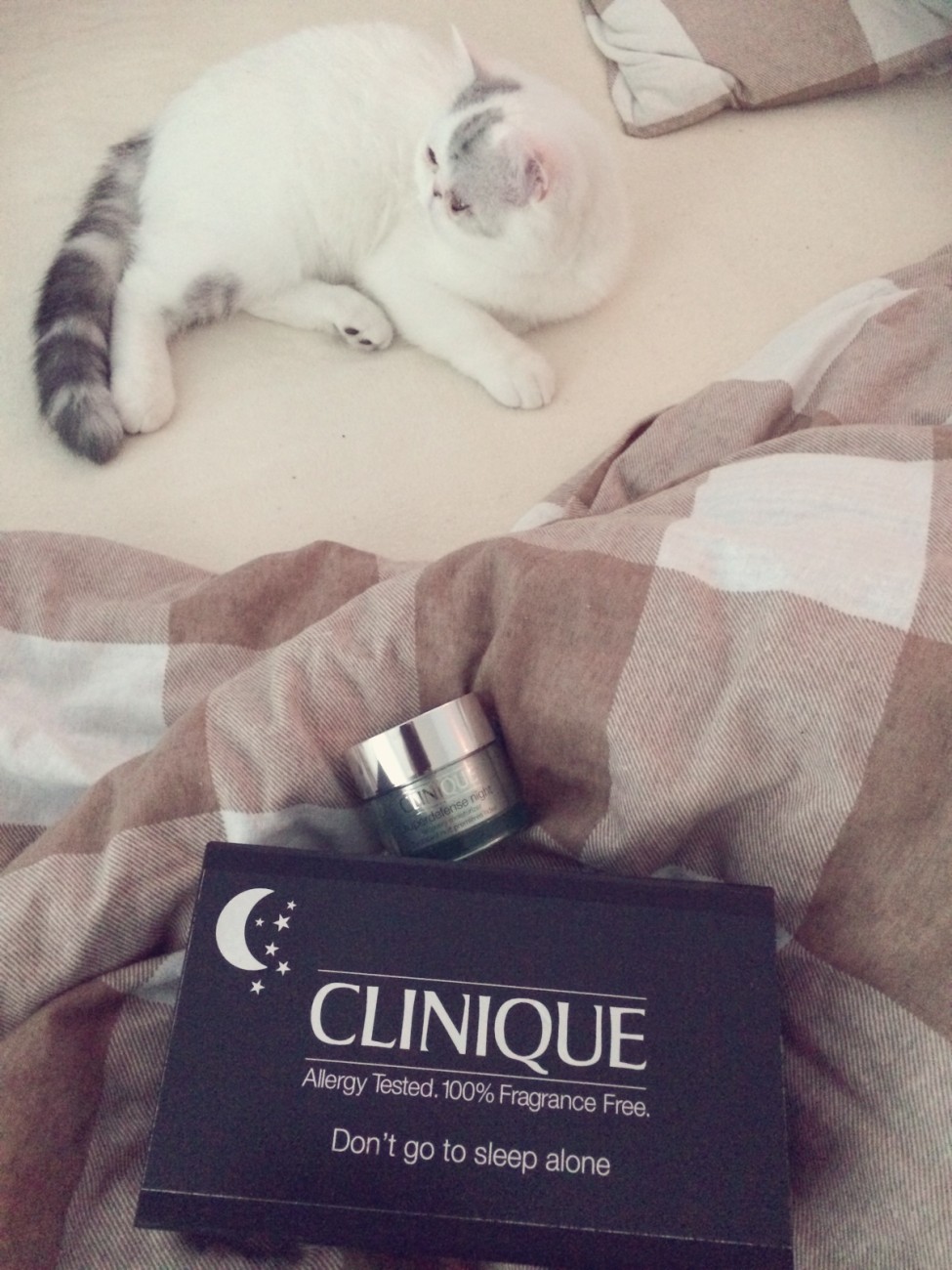 Don’t go to sleep alone. I never do! Har ju Lucius som aldrig skulle låta det hända! Som en perfekt match till dagcremen Clinique Superdefense SPF 20finns nu nattcremen Superdefense Night Recovery Moisturizer i två versioner; Very Dry to Dry samt Combination Oily to Oily. Den här cremen utlovar att bekämpa dina första ålderstecken medan du sover. Och det är ju alltid trevligt att någon annan jobbar åt en när man själv inte gör det! Stay plum and firm. Den här formulan är fullproppad med parfymfria, verksamma ingredienser; Antidoxidanter, vitamin E och C, rosmarin, algextrakt, fettsyror, proteiner från sojabönor och vete, hyaluronsyra m.m. Utlovar att stimulera hudens naturliga kollagen- och elastinproduktion samt stärka hudens egna skyddande skinnbarriär.Tyvärr fick jag ett test som inte passade ade min hudtyp men älskar dagcremen så är övertygad om att denna är lika bra. Testade formulan på handen på handen och älskar den lyxigare konsistensen som är åt det fastare hållet. Det enda jag inte gillar är den svagt syntetiska doften, som inte kommer från någon parfym –då alla Cliniques ansiktscremer är parfymfria. Men vem vill ha parfym i ansiktet? Inte jag i alla fal!