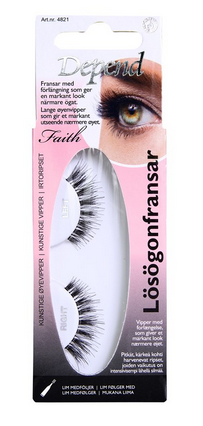 Jag testade Depends flirtiga fransar Faith på min kompis Anja. De känns lite mer klassiska än mycket av Depends övriga utbud och passar även oss som är 30 + och vill ha en markant look närmare ögat – inte de där långa, tjocka ”dockfransarna”. Ger ett mer neutralt intryck och passar därför alla tillfällen!
