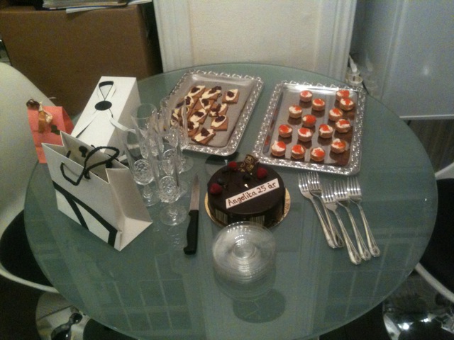 Jag och några vänner överraskade min vän Angelika igår på hennes 25års dag med tårta,snittar och presenter.