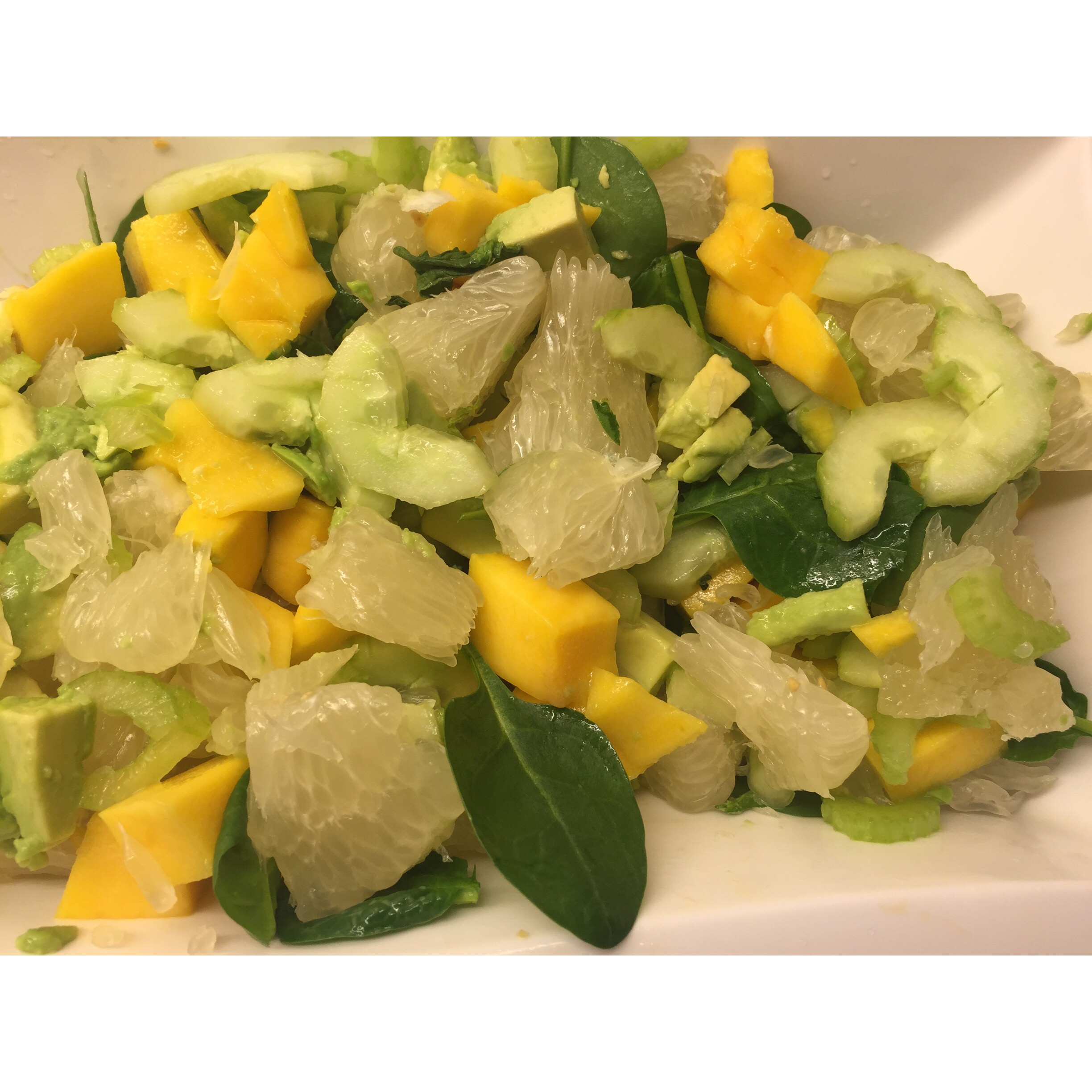 Lördagslunch -spenat/selleri/avokado/grapefrukt/mango sallad med en fänkålslax som fortf är i ugnen. Väntar hem mitt hjärta som haft några klienter på fm.
