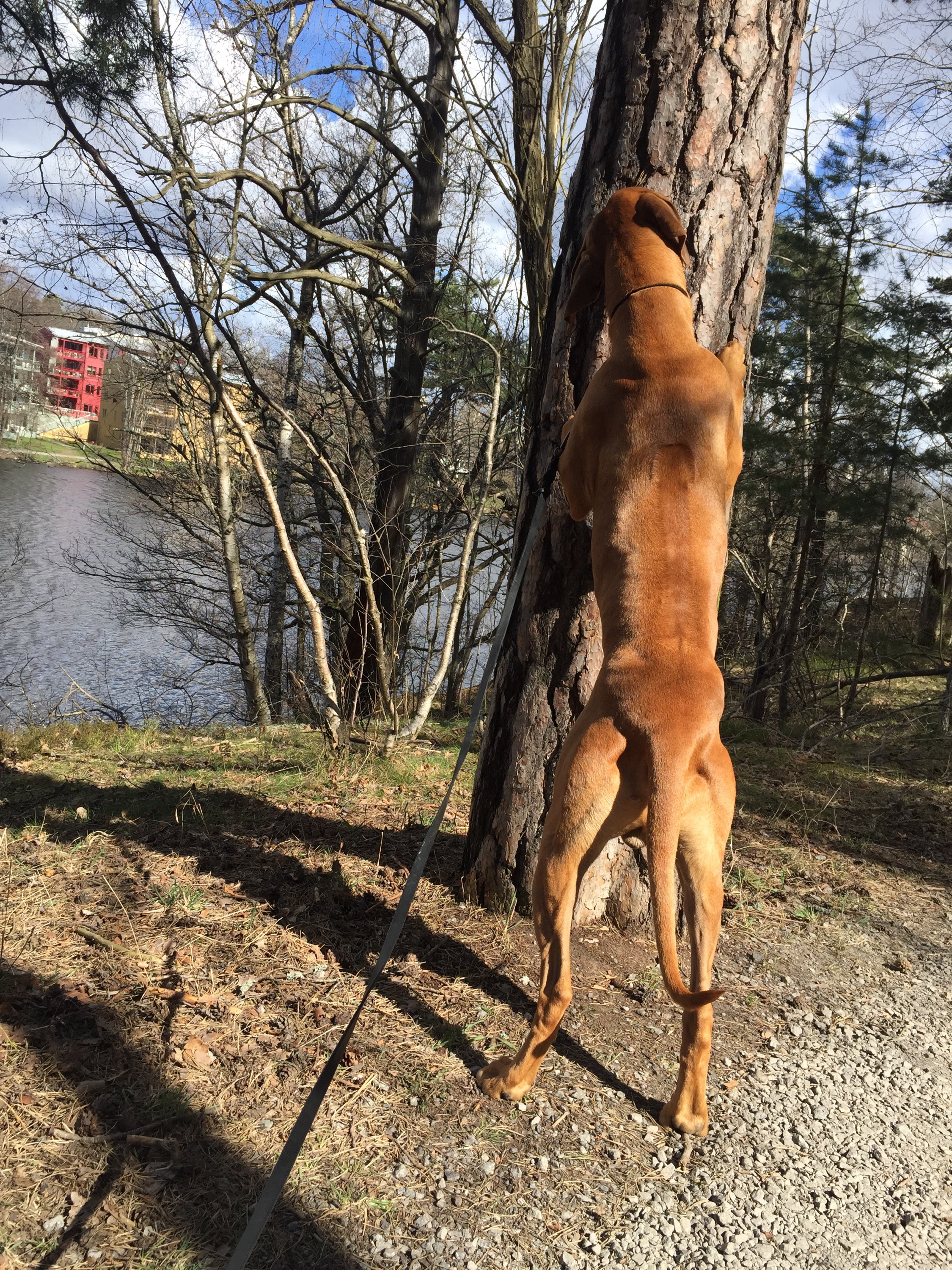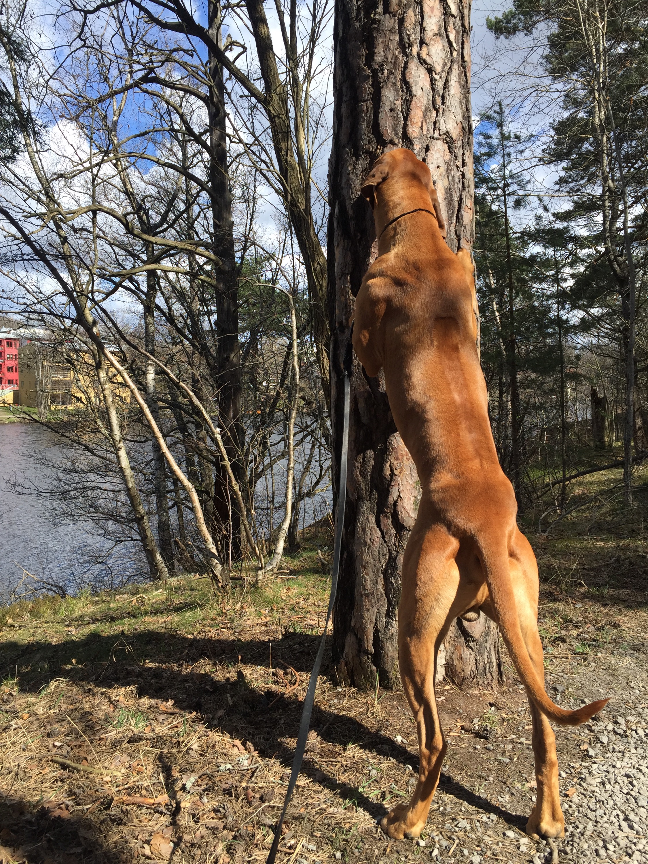 Det blev en leta godis i träd aktivitet idag i brist på tid. Väldigt bra träning och uttröttande när man inte ha tiden för långpromenad mitt på dagen 🙂