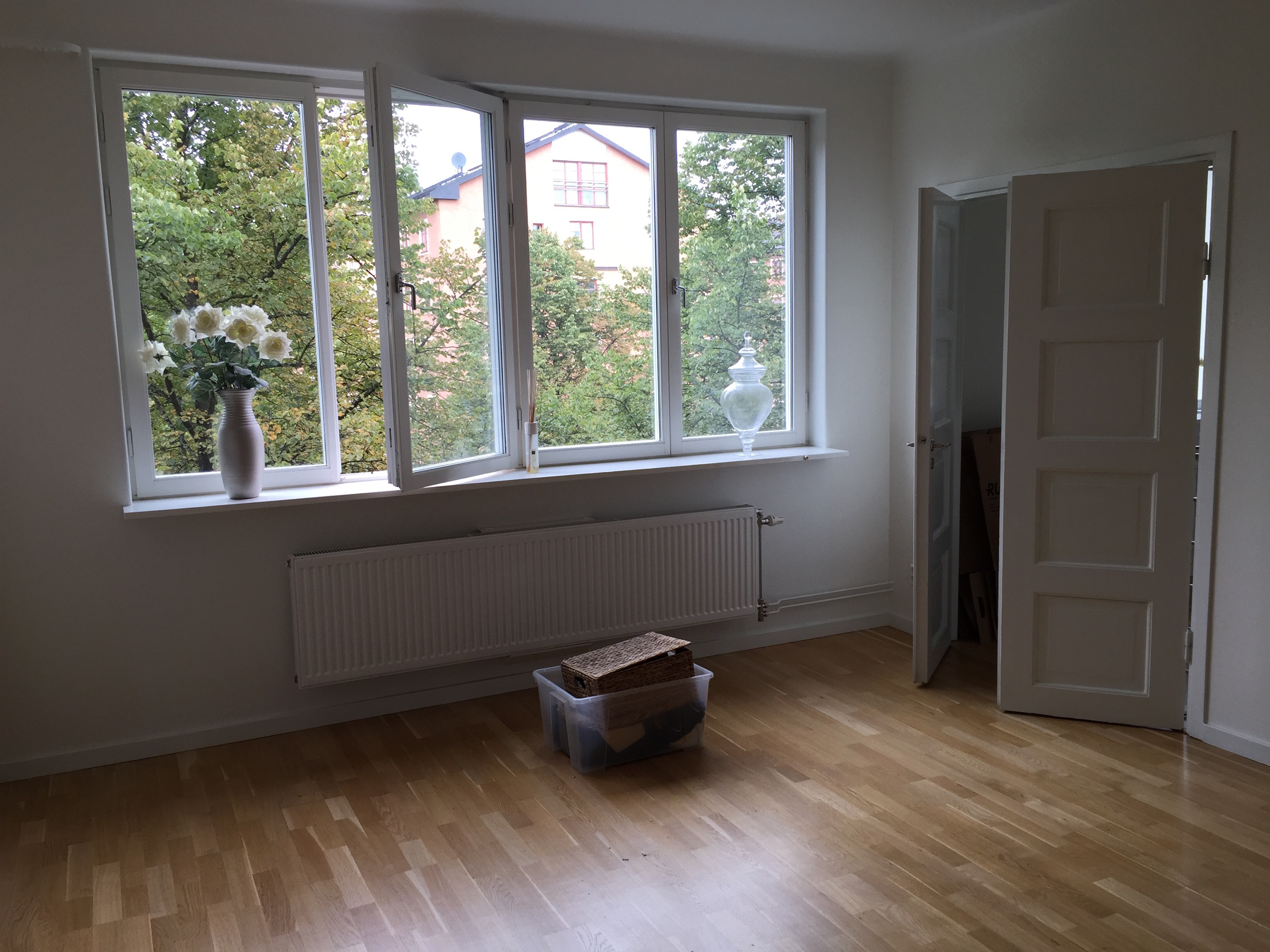 Dessa två dagar har varit kaotiska. Har jag inte jobbat så har jag flyttar grejer till och från lägenheten, tagit emot städerska för flyttstädning, kånkat sopor och försökt få saker och ting att kännas någorlunda HEMMA i värt nya hem. Behövs några dagar till. Jag älskar våra fönster i vardagsrummet och dubbeldörrarna in till sovrummet.