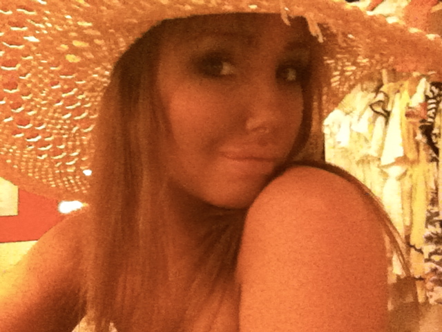 Samma kväll som jag hade fyllt mina läppar. Hittade någon solhatt hemma hos Jennifer haha.