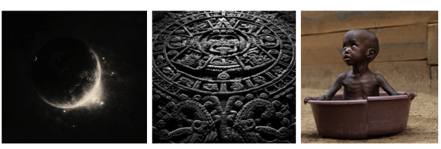 Förstår inte folk att jorden redan är undergången?.. VARJE DAG SVÄLTER 100 000 MÄNNISKOR IHJÄL, barn blir våldtagna, tvingas att bli soldater och tvingas att prostituera sig. Varför dramatiserar ingen det? Om 100 000 amerikaner skulle dö och allas barn skulle bli våldtagna skulle det bli ett himla kalabalik. Tyvärr är det vi människor som förstör denna värl