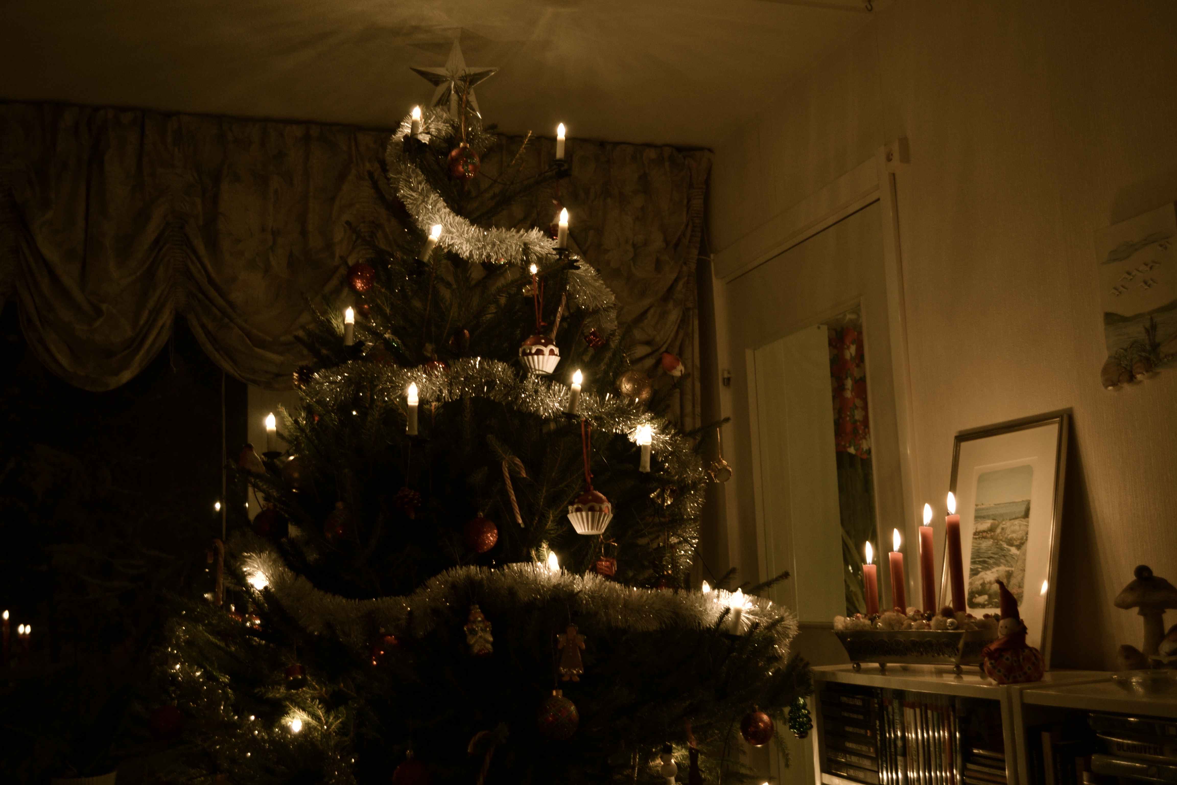 Julafton imorgon då! Har varit i stan med Sanna hela dagen och julhandlat. Var lite bakis eftersom jag, Jennifer och Paul var ute igår ju. Men nu är alla palet inslagna. Brorsorna med flickvänner är här just nu och vi har uppesittarkväll med massa gott. Alla andra spelar bingolotto och jag klär granen. Pappa köpte den finaste granen i världen haha! Den är så stor och fluffig och luktar jättegott och jag fick äran att pynta den. Det var tydligen skyltexemplaret hos granhandlaren men pappa lyckades deala till sig den ändå. Mamma och jag har också gjort marsepanfigurer och så har jag dekorerat några pepparkakor. Orkade inte baka egna eftersom jag gjorde det här om dagen, men de tog tyvärr slut.