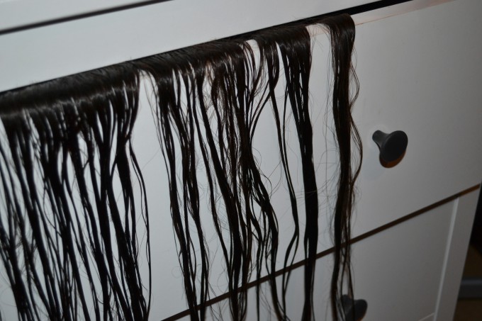 5. Satte fast håret i lådan på byrån så det blev lättare att arbeta med.