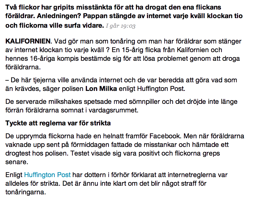 Vet inte vad jag ska säga om detta, samtidigt som det låter väldigt komiskt att man gjort detta så är det ändå hemskt. Dottern är antingen helt rubbad eller så har hon en riktigt dålig relation till sina föräldrar. Och vilka föräldrar ens anmäler sin dotter? Sådana saker bör en familj hålla för sig själva. För även hur besvikna det än är på gör man inte så. Läxa upp henne själva förfan.