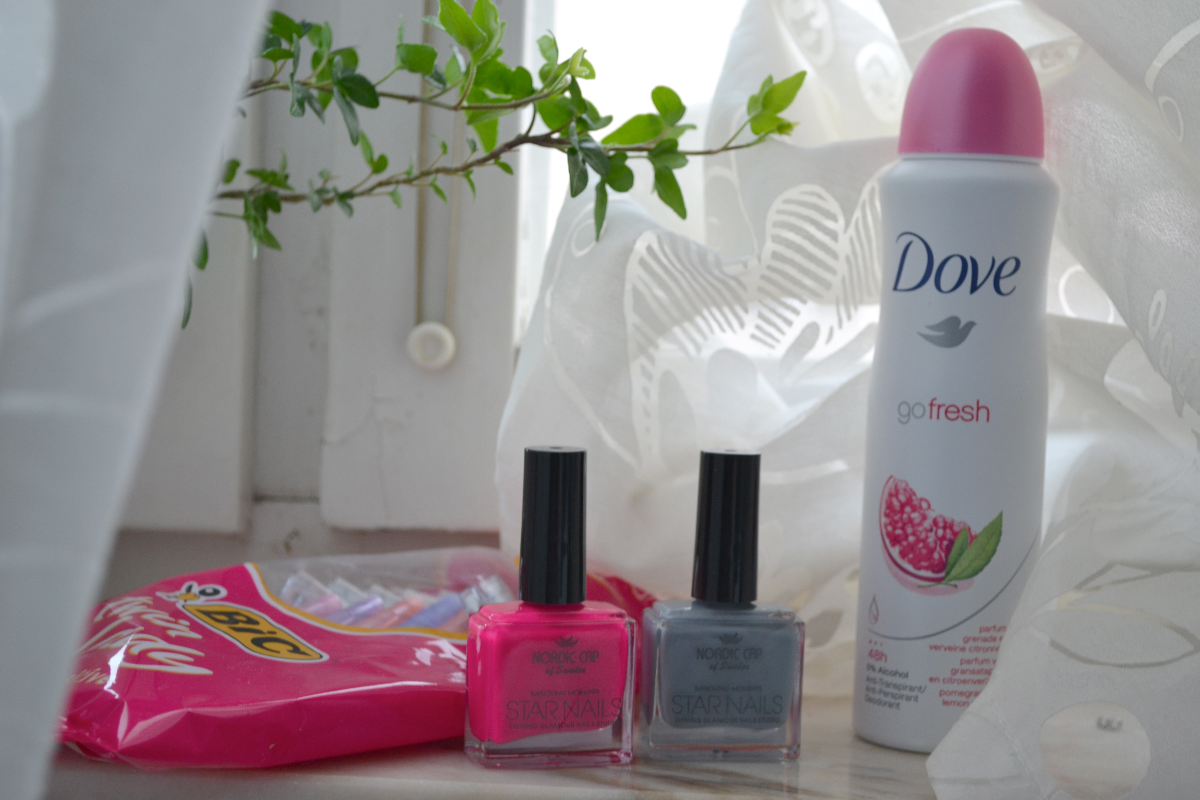 Denna söndag har jag spenderat med pojkvännen. Låg och drog oss i sängen hela morgonen och hade det mysigt. Sen så kom pappa med lilla Stina som började pipa och kraffsa på din dörr och ville komma in. Så vi myste lite med henne och pappa duschade henne. Sen åkte mamma, han och Stina till Västerås för att hälsa på pappas föräldrar. Så jag och Adam har haft hela lägenheten för oss själva. Jag har städat lite medan han såg film och åt mitt påskägg haha. Sedan lagade vi lunch ihop, pasta såklart, sen softat lite på balkongen då det var lite sol även idag. Dock började det snöa senare på eftermiddagen. Så vi satte på oss jackorna och gick till ica. Adam skulle ha cigg och jag hårfärg. Tänkte fräscha till mig lite med lite extra färg, sen lite slingor på det. Får se hur det blir. Fick även med mig lite annat. Två assnygga nagellack för 10 spänn styck haha. Kunde inte låta bli.