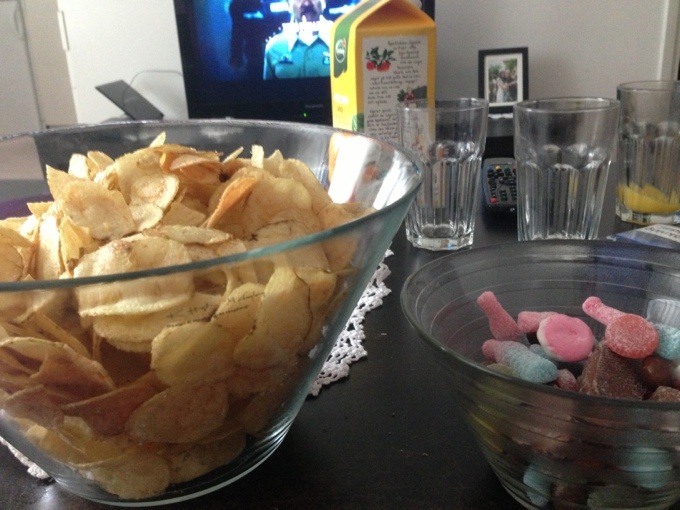 köpte godis och såg på Baksmällan 3. Men jag somnade såklart efter