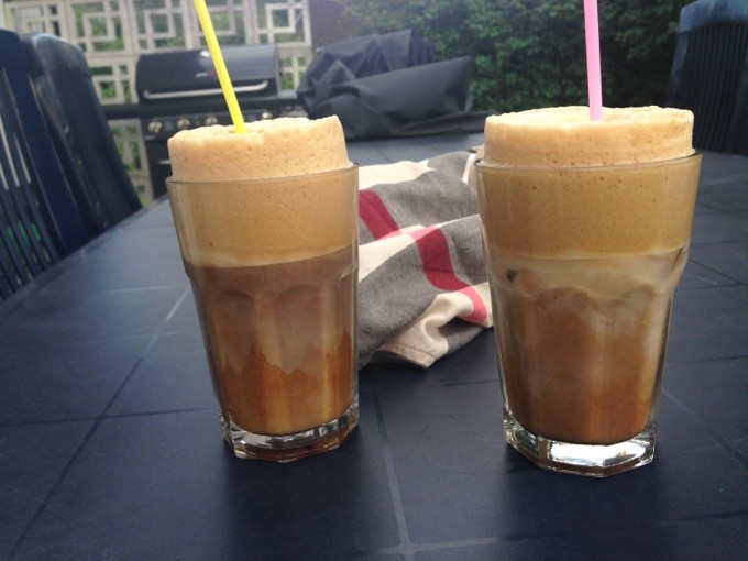 Tidigare idag blev jag upphämtad och sen satt vi bara på hans altan och drack Frappe. Solen hann gå i moln så vi hann aldrig sola 🙁