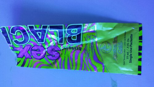 Solkrämspaketet ser ut som ett kondompaket och man skulle bli sexy black.. hmm det blev jag inte direkt, men lite lätt röd.