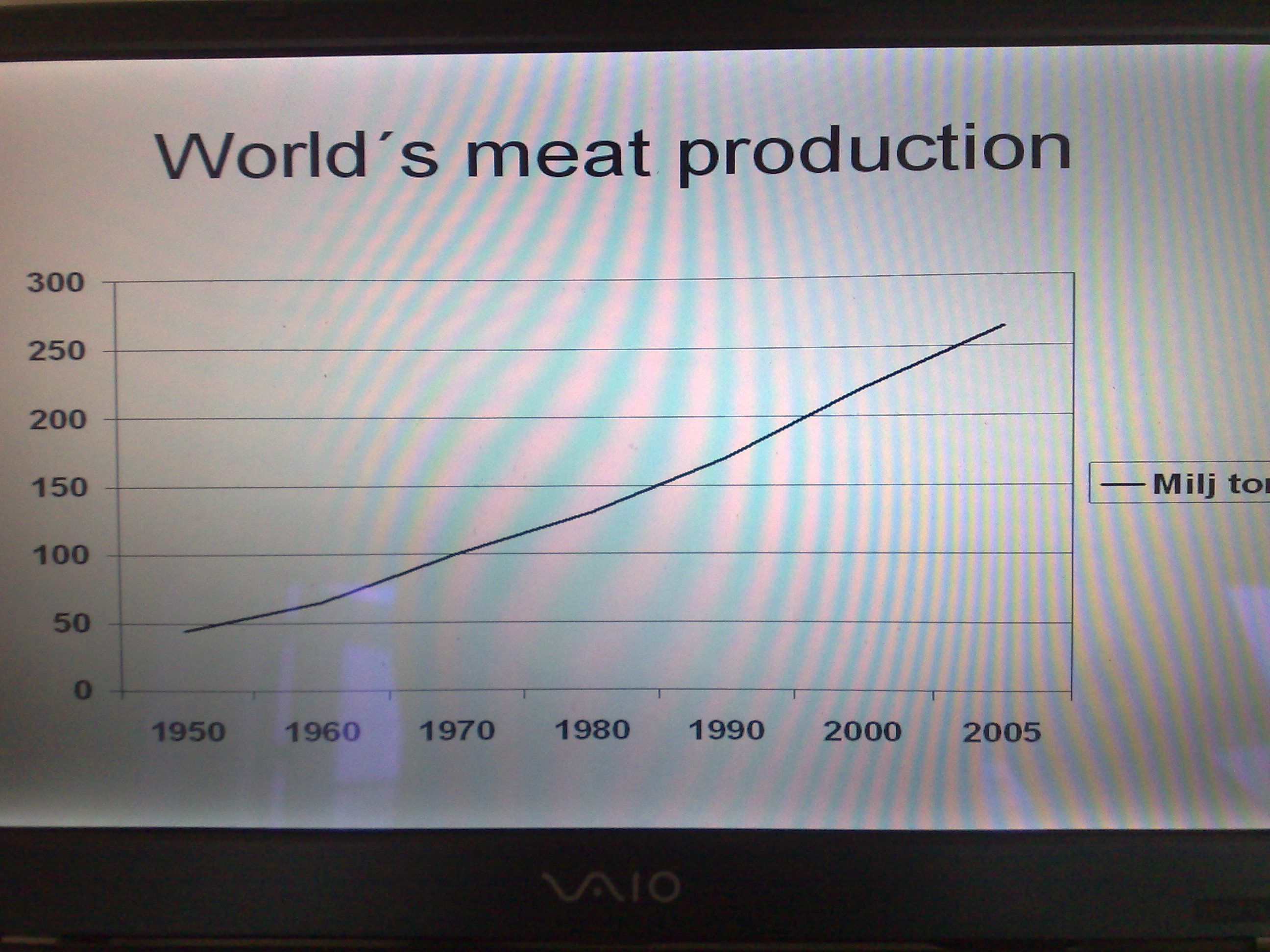 1950, år man ungefär 50kg kött / person och år och 2050 beräknas denna siffra ha stigit till 90 kg / person och år.