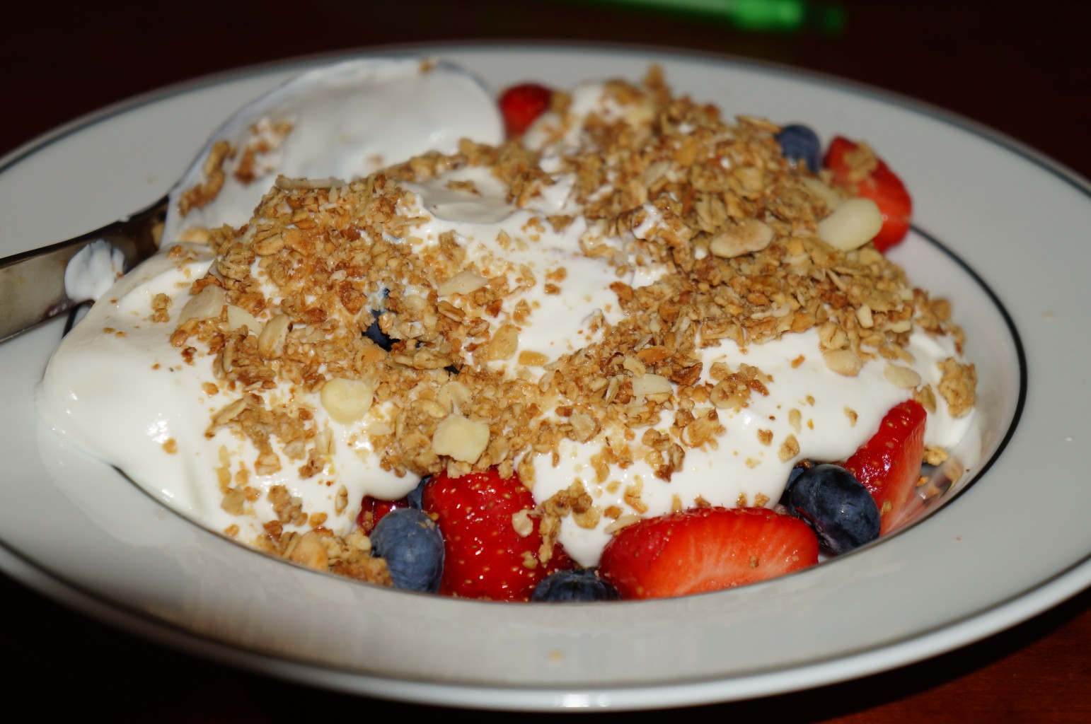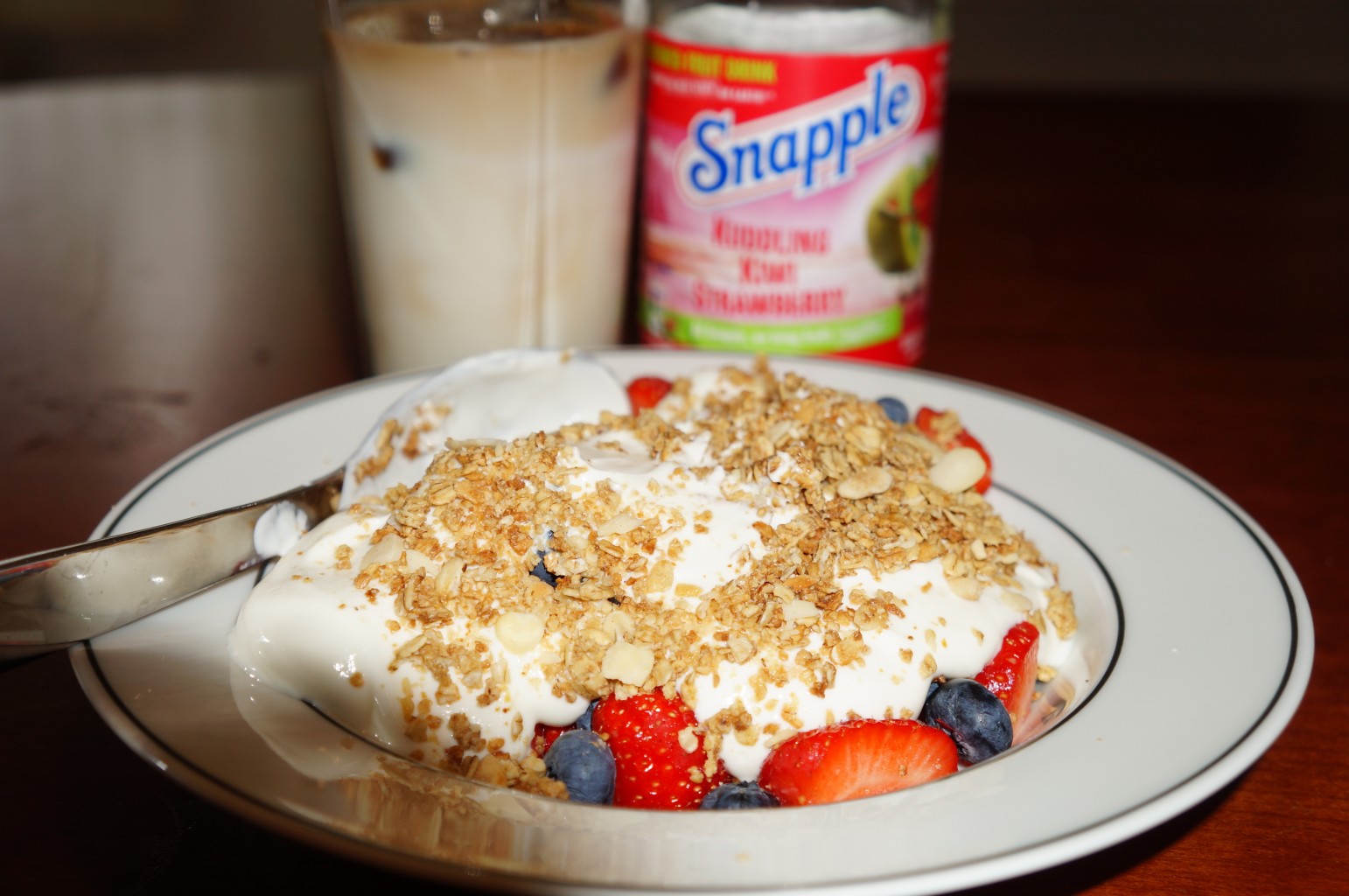 Ble lunsj hjemme i dag, gresk yoghurt med bær + kaffi og Snapple, nam❤