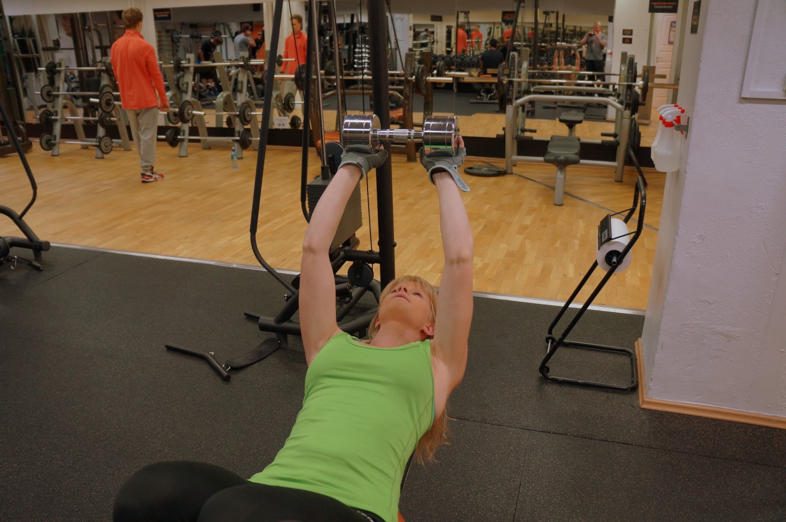 Denne øvelsen er veldig effektiv hvis man gjør den riktig. Det er bedre å ta en lett vekt i starten for å lære hvordan øvelsen gjøres riktig før man tar den tyngste vekten. Jeg ligger på benken med beina opp for å få hele ryggen ned i benken, det styrker core (mage, rygg).