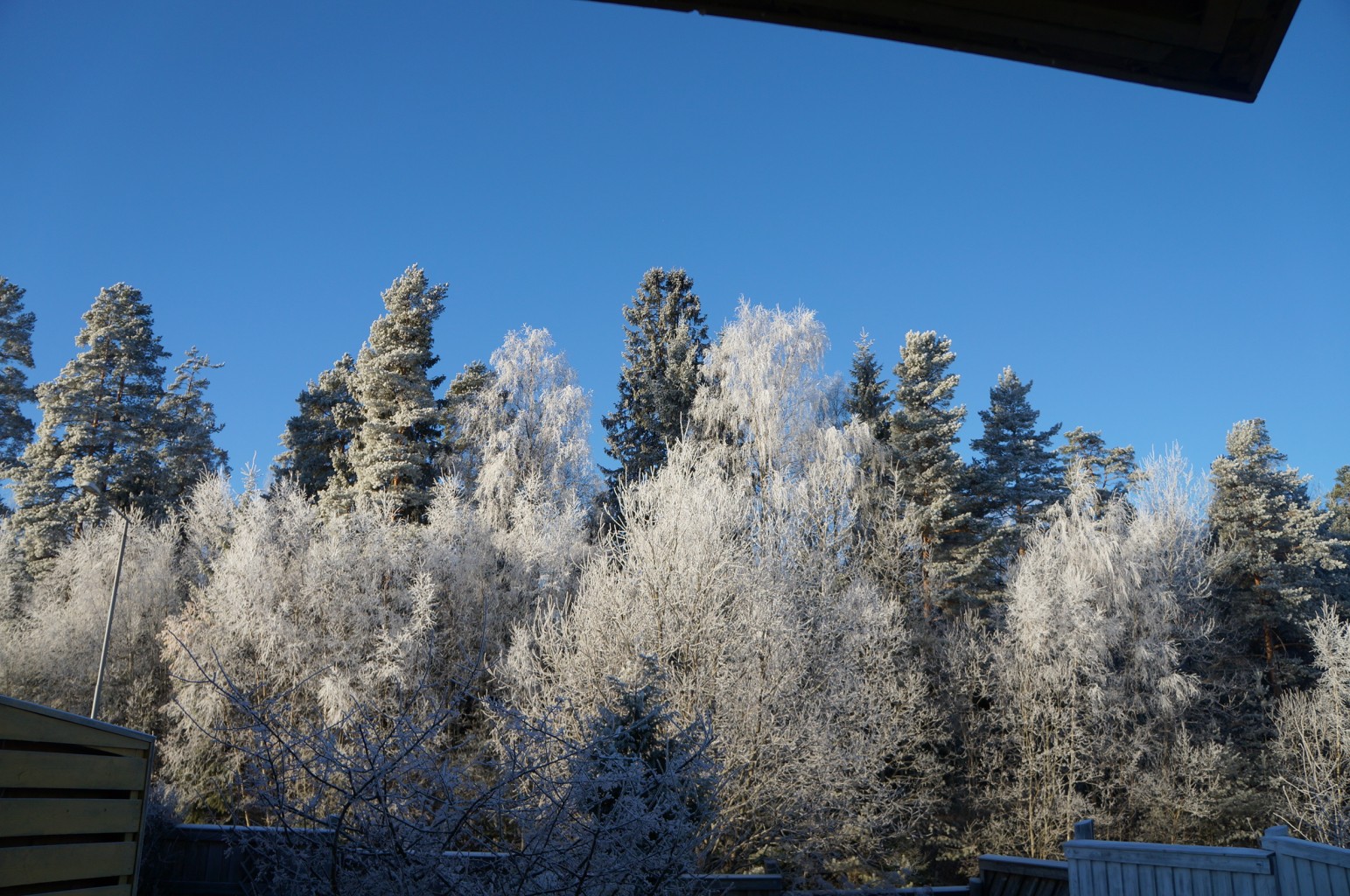 Nå er det fyrt i peisen og vi har spist, koselig å komme hjem og se ut på all frosten og kulden som er ute. Tok noen bilder før vi gikk i dag.