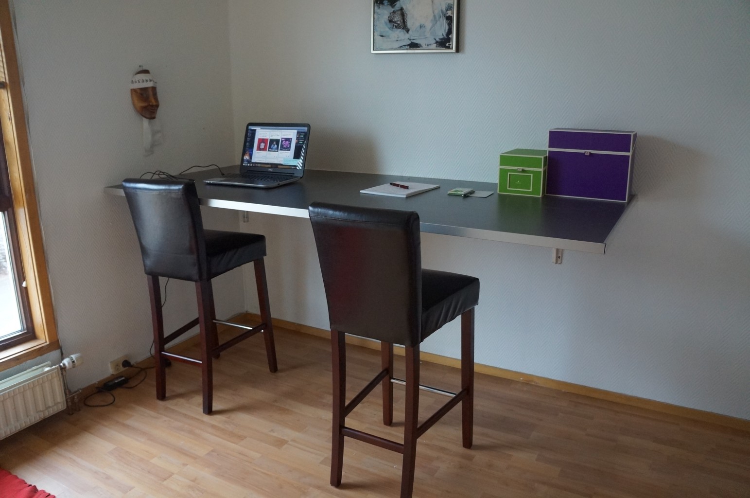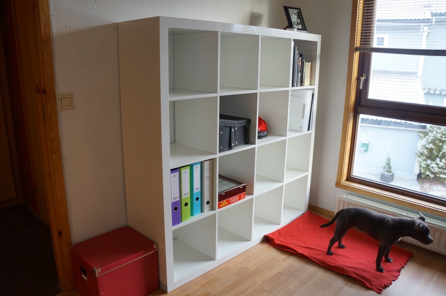 Greit å ha to stoler så begge kan sitte her oppe. Det ser jo veldig tomt ut fortsatt, men som sagt er det mye igjen. Dette rommet skulle egentlig bli enda et gjesterom, men Kristoffer var lei av at pc’en alltid sto framme nede, så da fikk det bli et kontor i 2. etg. Vi har ikke så mye overnattingsgjester at vi trenger to rom kun til det. Jeg er veldig glad for at vi kan si vi er så etablert allerede, jeg er jo bare 22 år og eier et hus og bil sammen med min kjære. Når vi er klare for å bli en større familie trenger vi ikke flytte på grunn av plassmangel og det er deilig å tenke på. Jeg har aldri villet bo i leilighet med barn OG to hunder.