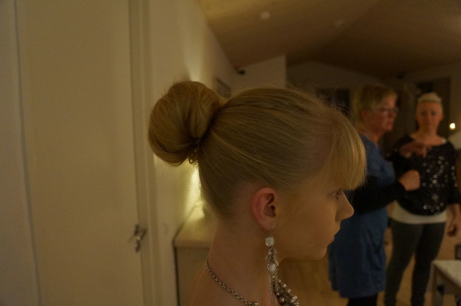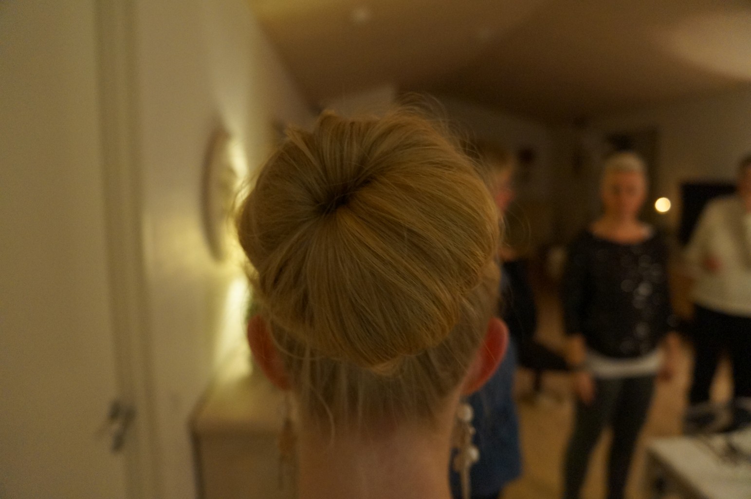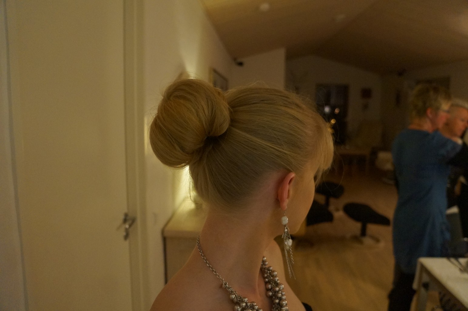 Når jeg var i vårt flate naboland hadde jeg kjøpt med meg en donut til håret. Det er første gang jeg prøvde å lage en, men gikk ikke helt etter planen, jeg må se på flere videoer, men så fikk jeg hjelp av søsteren til Kristoffer, da ble den fin og jeg ble fornøyd, enkel donut laget med to strikker.
