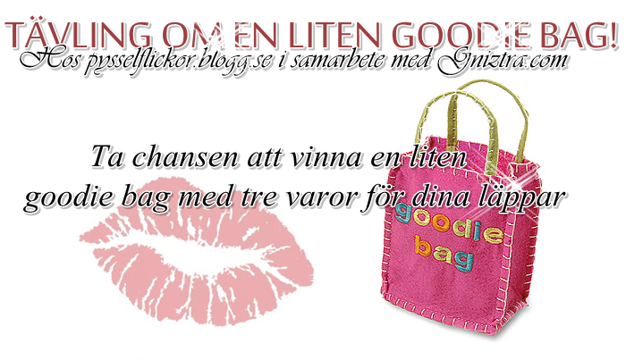 vinn en goodie bag 18 apr 2012 av flisan heej bloggen vinn en goodie bag på gniztra var med och tävla. jag är med och tävlar nu. men nu ska jag gå så bye bye