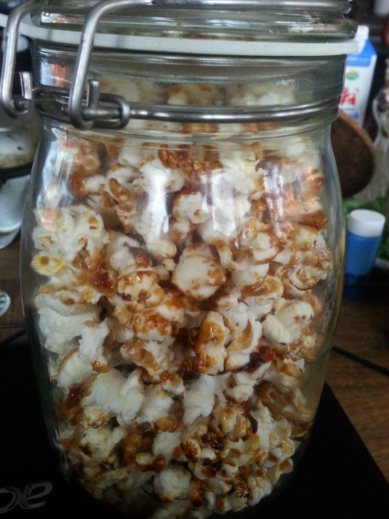 Gjorde karamellpopcorn som sagt i dag. Det gick faktiskt ganska så bra men jag brände mig men det gör inget.