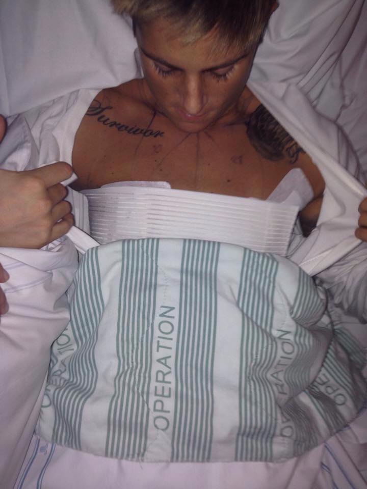 Lyckan att vakna upp och inse att det inte bara va en dröm jag hade. Det första jag gjorde efter jag vakna upp ur narkosen försökte sätta mig upp, aj!!! Tänkte varför gör det ont, kände över mitt bröst.. Dom är fan helt borta!!! Obeskrivlig känsla Just nu är jag helt väck peace out