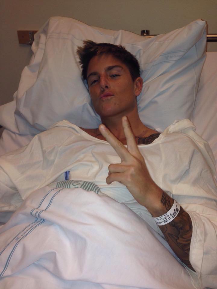 Jag va helt väck när jag va på uppvaket jag såg min kirurg springa förbi mig då sa jag tjena helt groggy han bara log åt mig och sa du ser bra ut Alex. Jag hade bråttom ner igen för jag visste att min kära syster och min älskling satt och väntade spänt på mig. Så jag sa att jag va pigg och kände mig redo va så jävla exicted att få se dom.. Hissen stannar på våningen och där rullar jag ut skit snygg och fräsch med ett smile och ser dom sitta där och vänta på mig, hej! Sen kom resten av familjen och träffade mig.