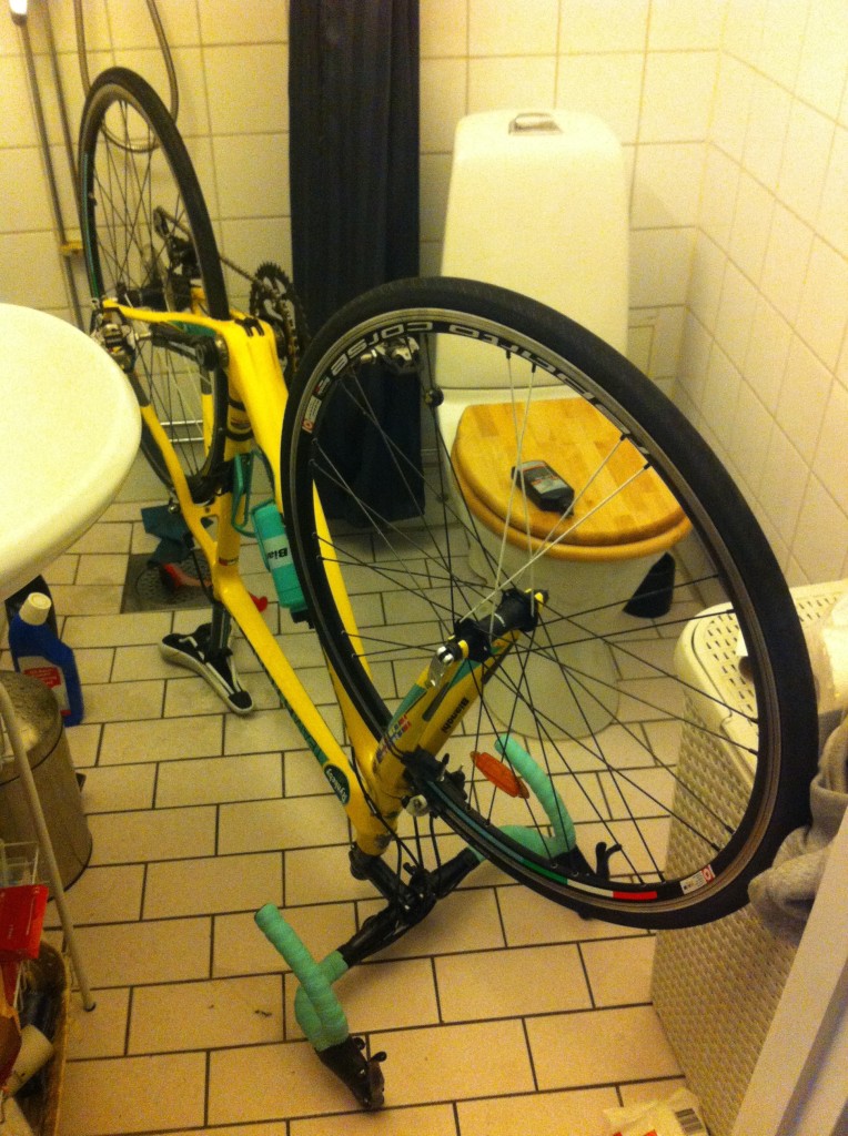 Igår uppdagades det att min cykel tydligen hade blivit smutsig. Efter en kommentar från en av mina Teamkamrater förstod jag att sådär kan vi nog inte ha det..? Det fick givetvis bli kompakt-living-fordonsvård i mitt garage!