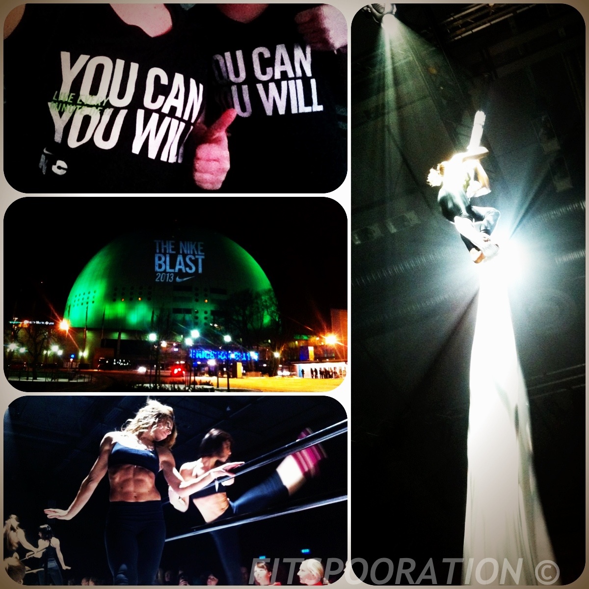 I just got home from a fantastic evening at the Stockholm Globe and Annexet, Nike Blast 2013. It was an evening of both fashion show + dance with Nike’s new spring collection of workout clothes, it was  group exercises and then a little mingling with photography and goddie bags.