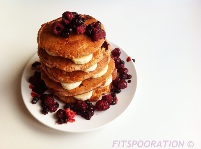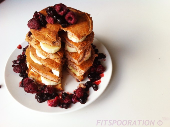 Dessa pannkakor gjorde jag till frukost idag och varvade dem med banan, hallon och blårbär. Helt fantastiskt, testa dessa!