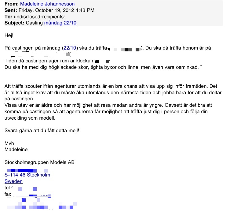 Igår var jag och träffade två agenturer på Stockholmsgruppen, en japansk agentur, som jag träffat två gånger tidigare, och en ny agentur. (Agentur är ett företag som hittar mig och ger mig jobb och ger företagen förslag på modeller. Älskar verkligen min agentur, så ska ni bli modeller sök er till Stockholmsgruppen. Flera modeller från Mikas, People m.fl. har börjat försöka byta.)