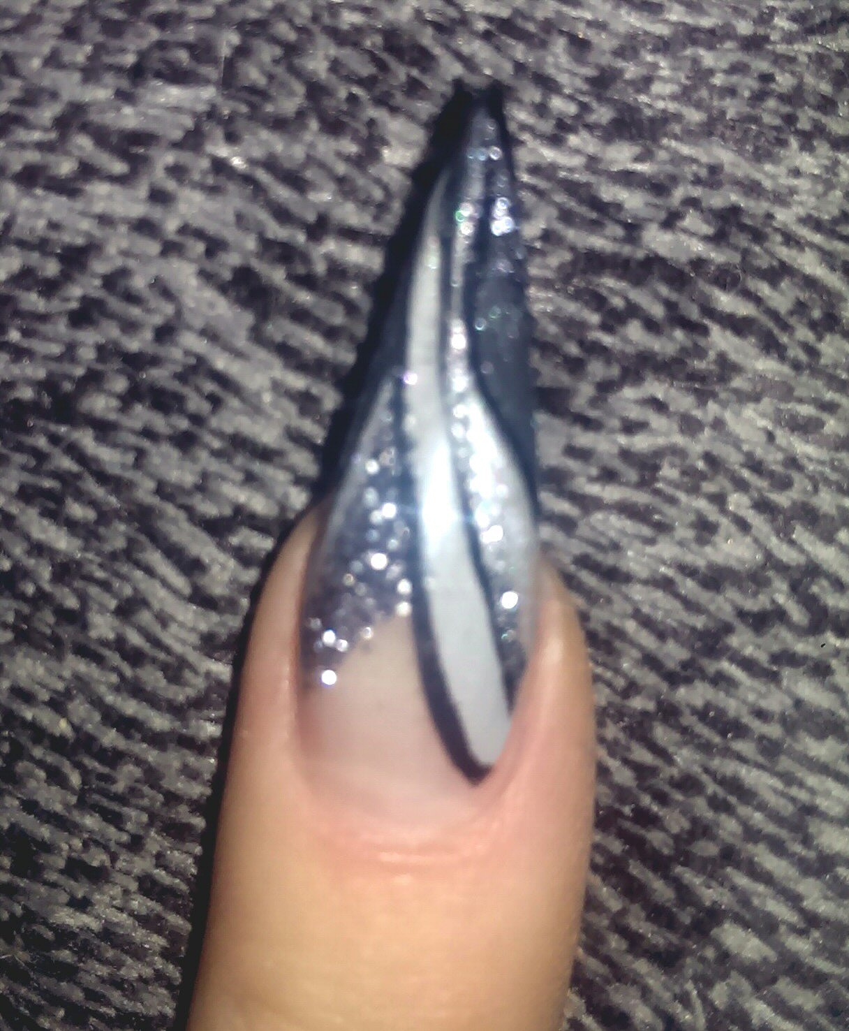 Jag har varit ensam hela kvällen så jag har suttit och grejat med min nagel och övat inför tävlingen som är på fredag!! Känner mig verkligen inte redo för att tävla… Jag har dragit ut på tiden så länge så nu vet jag knappt vad jag ska göra. Men tror att det jag gjort idag blir ganska bra i alla fall! Hoppas min nagellärare tycker det är godkänt..;)