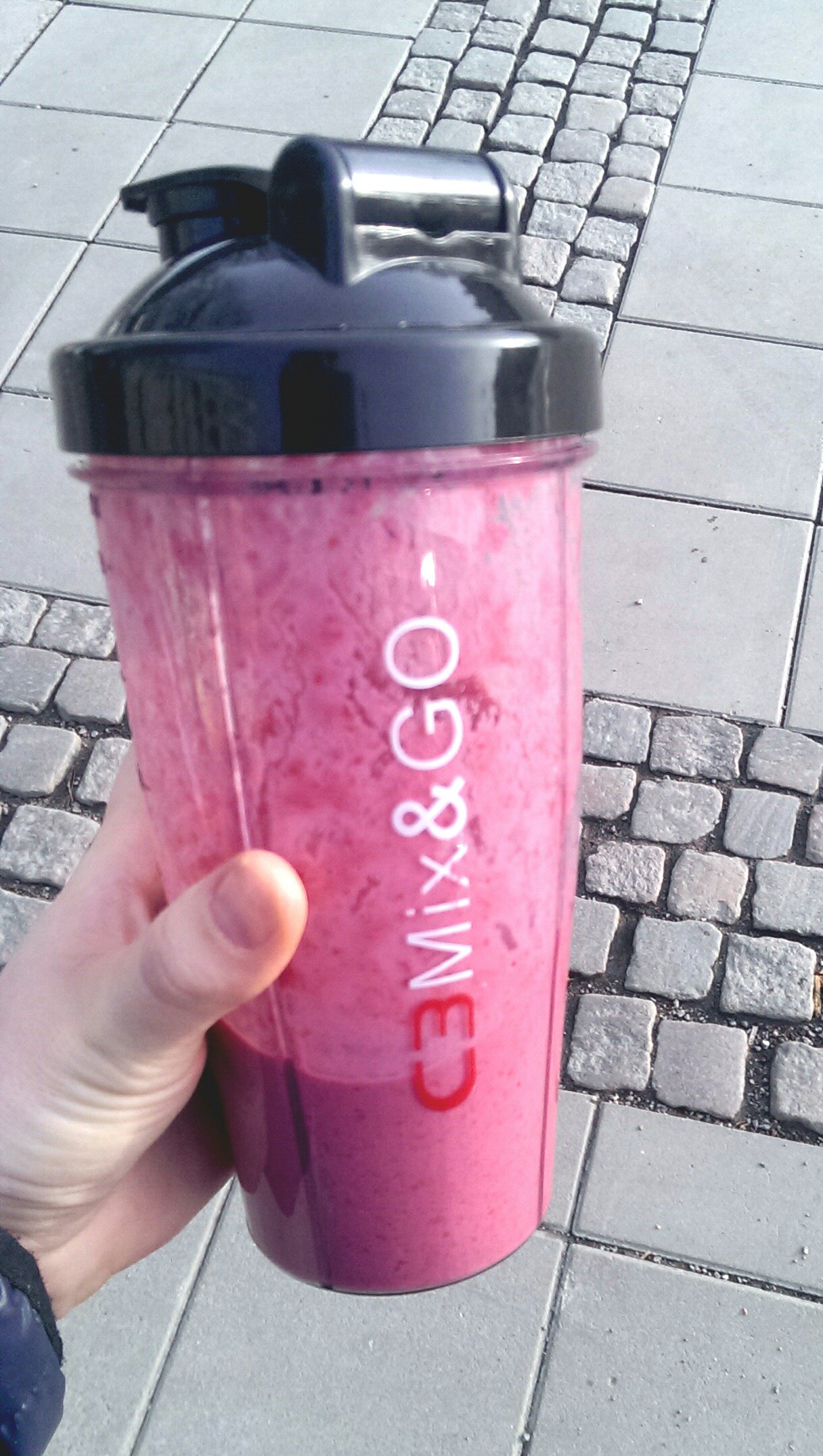 Gjorde mig en härlig granatäpple och hallon smoothie och jag tog med till skolan som frukost! Super god och urenkel att göra med min nya mixer ”mix and go”! Älskar den verkligen, förut var det bara jobbigt att göra smoothies när man skulle släpa fram hela stora mixern plus att det blev massa disk!!