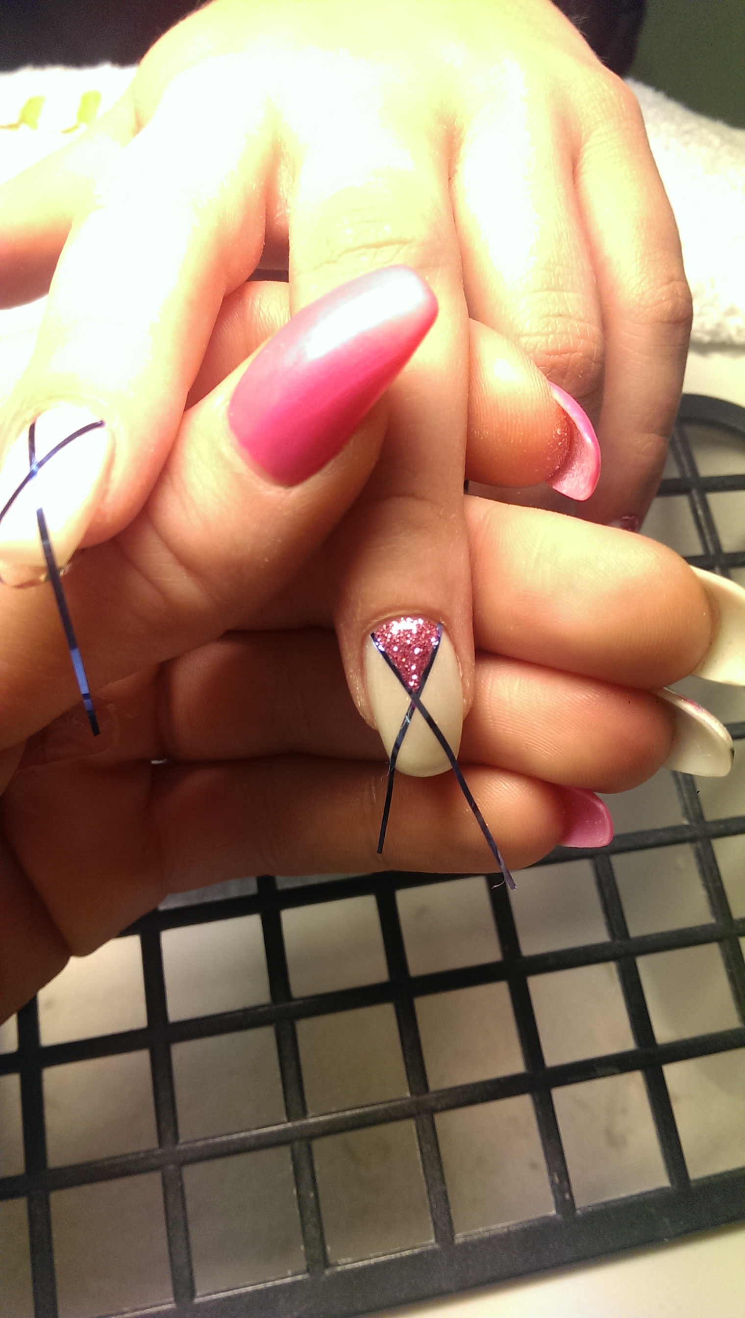 Färgerna blir väldigt konstiga i kameran, den vita stämmer ganska bra men glittret är rosa i verkligheten och inte lila! Mer som på bild 2