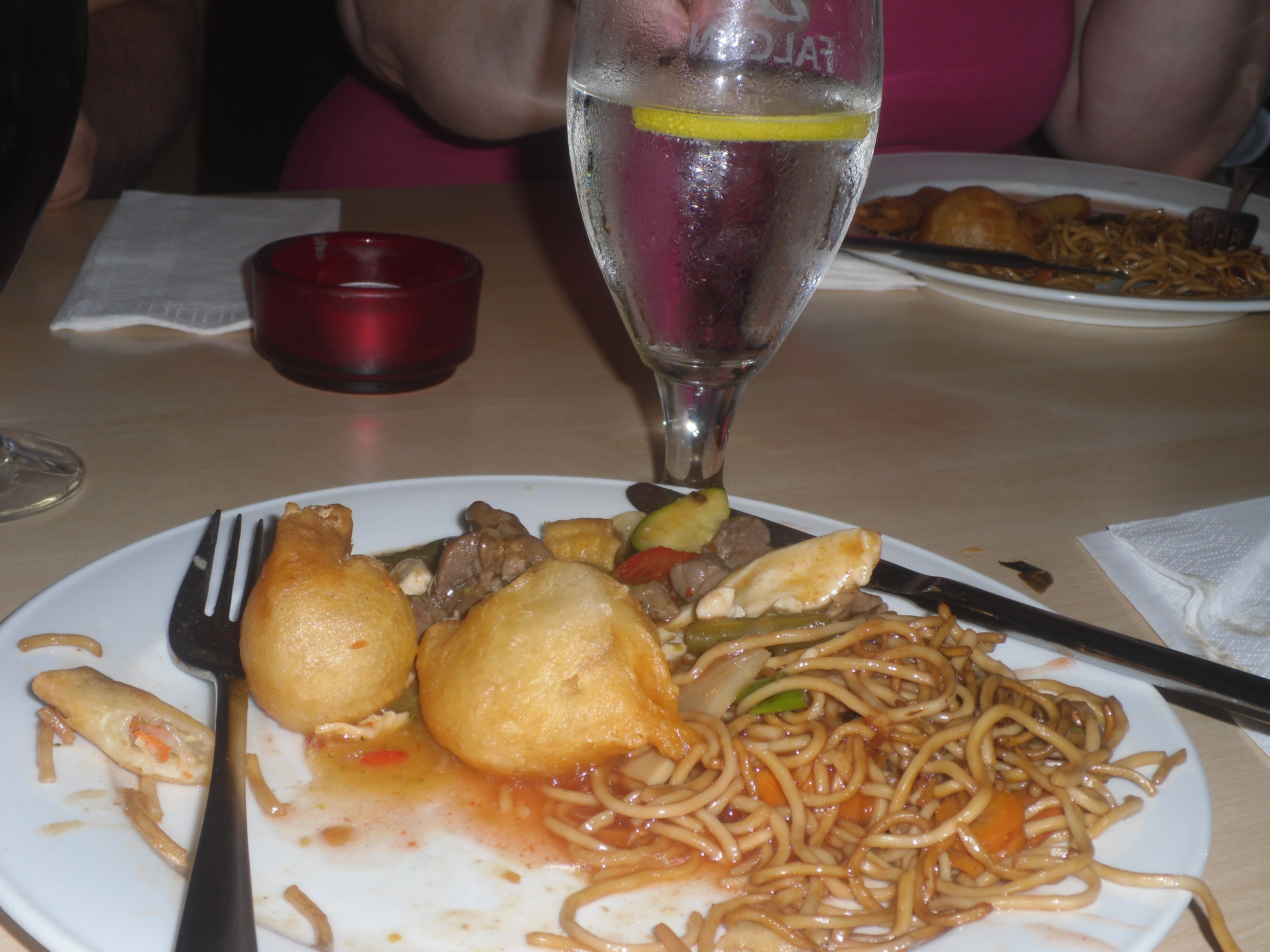 var jätte god mat och billigt en buffe för 240 kr för oos 3 yeah bättre kan det ju inte bli. Jag passade också på att köpa lite efterätt som bestod av friterad banan och glass mums mums var det hehe 🙂