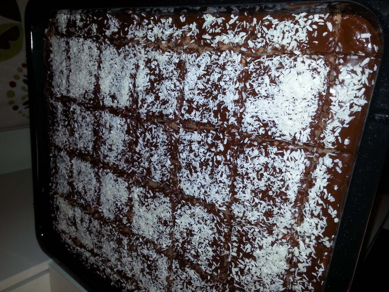 5. Ta över kokosflingorna och låt kakan svalna