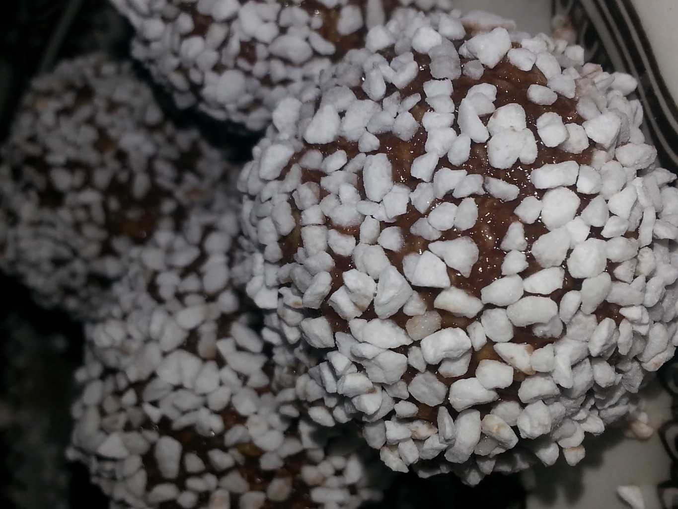 Chokladbollar 9 jan 2014 av gladatjejen Du behöver 100 gr smör 1 dl Strösocker 2 msk Kakao 2 msk Kallt kokat kaffe 1 msk Vaniljsocker 3 dl Havregryn Gör såhär Blanda alla ingredienserna i en bunke. Rulla till runda bollar. Rulla dem i pärlsocker eller kokos. LYCKA TILL!!!
