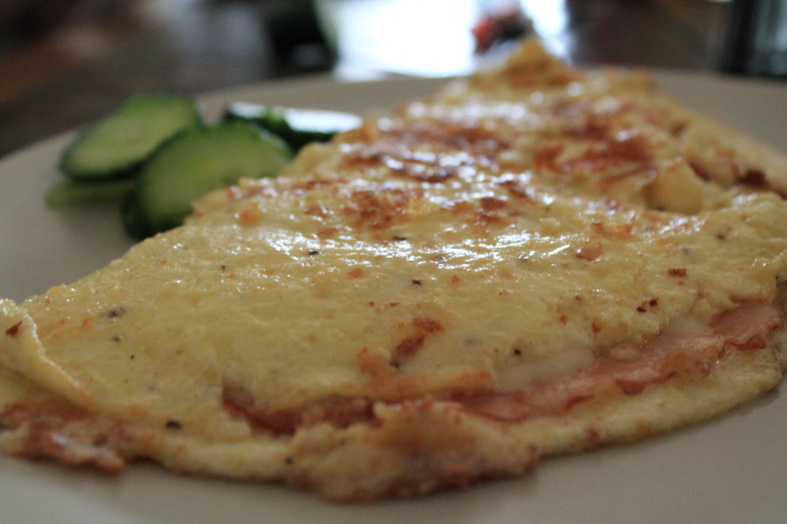 - Låt stå lite i stekpannan innan du lägger på skinkan och osten på ena halvan av omeletten.