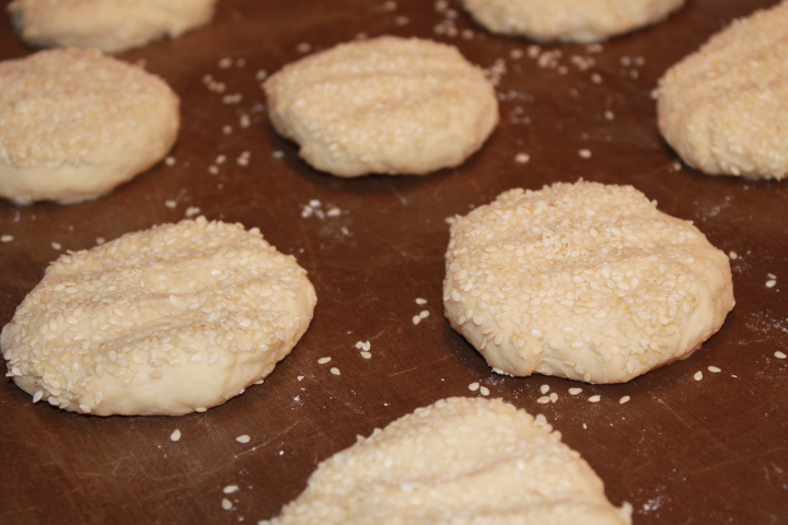 7. Häll sesamfrön på en tallrik och tryck ner varje bulle i den.