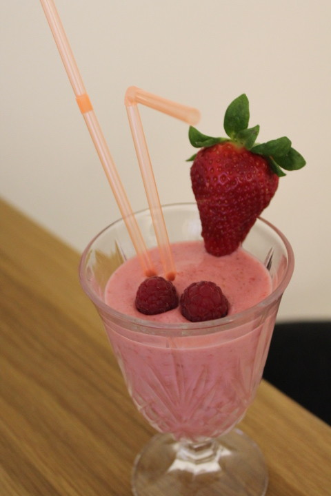 Smoothie 5 apr 2014 av gladatjejen Du Behöver: 1½ dl Mjölk 1 dl Vaniljyoghurt 400 gr Jordgubbar 2 msk Florsocker Du Gör Såhär: Lägg alla ingredienserna i en mixer och mixa Häll upp i glas Dags att servera! LYCKA TILL!!!