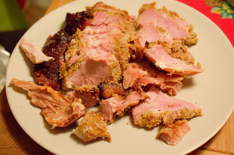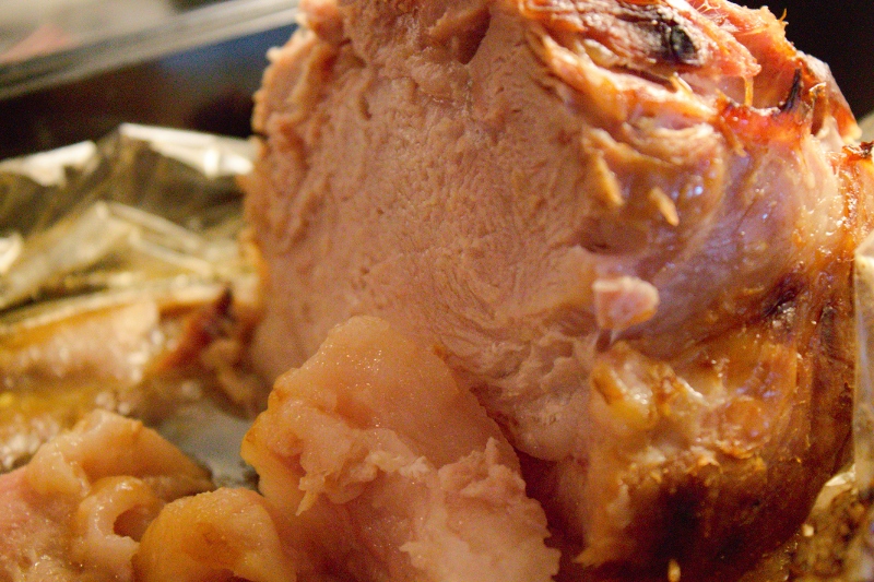 - Låt sedan svalna och och skiva upp skinkan.