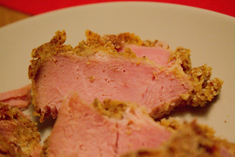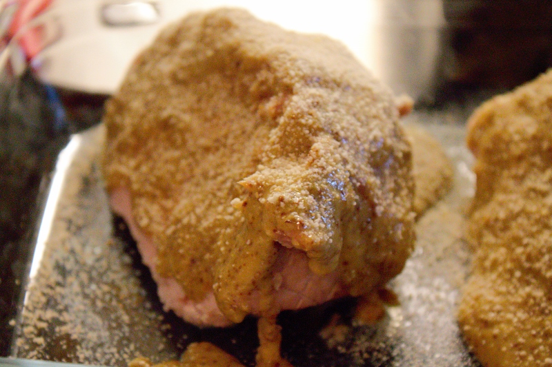 - Sikta sedan majsena på skinkan och fördela sedan senapsblandningen.