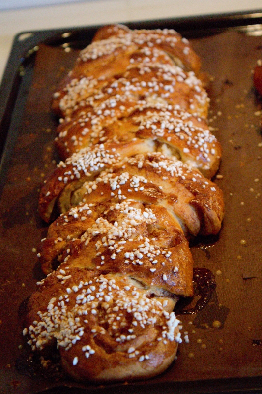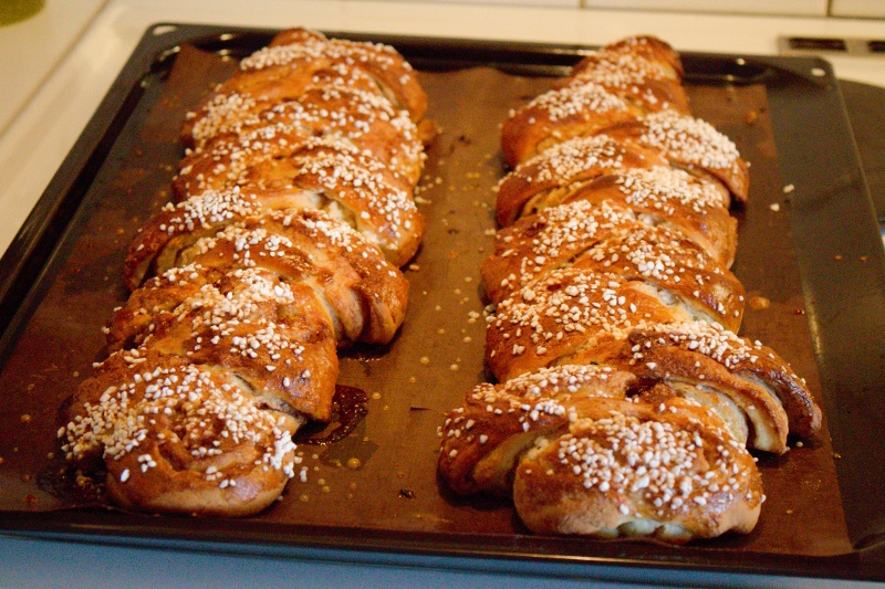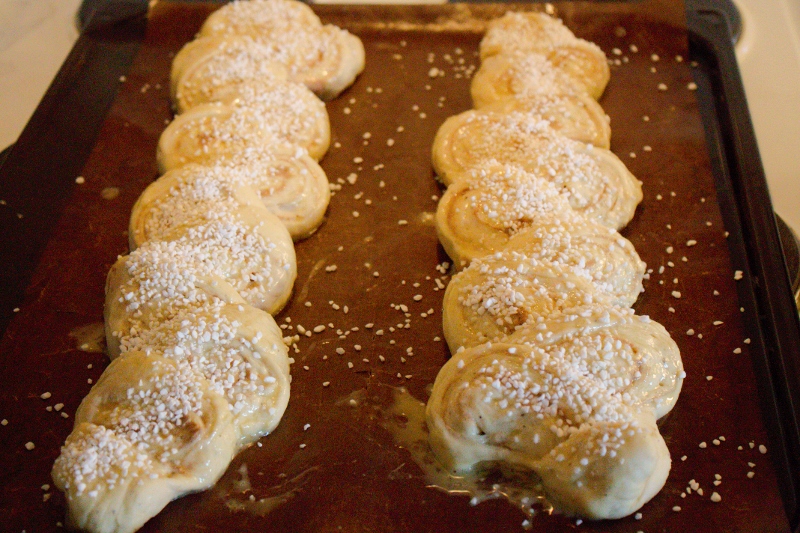 - Pensla längderna med lätt uppvispat ägg och strö på mandel eller pärlsocker.