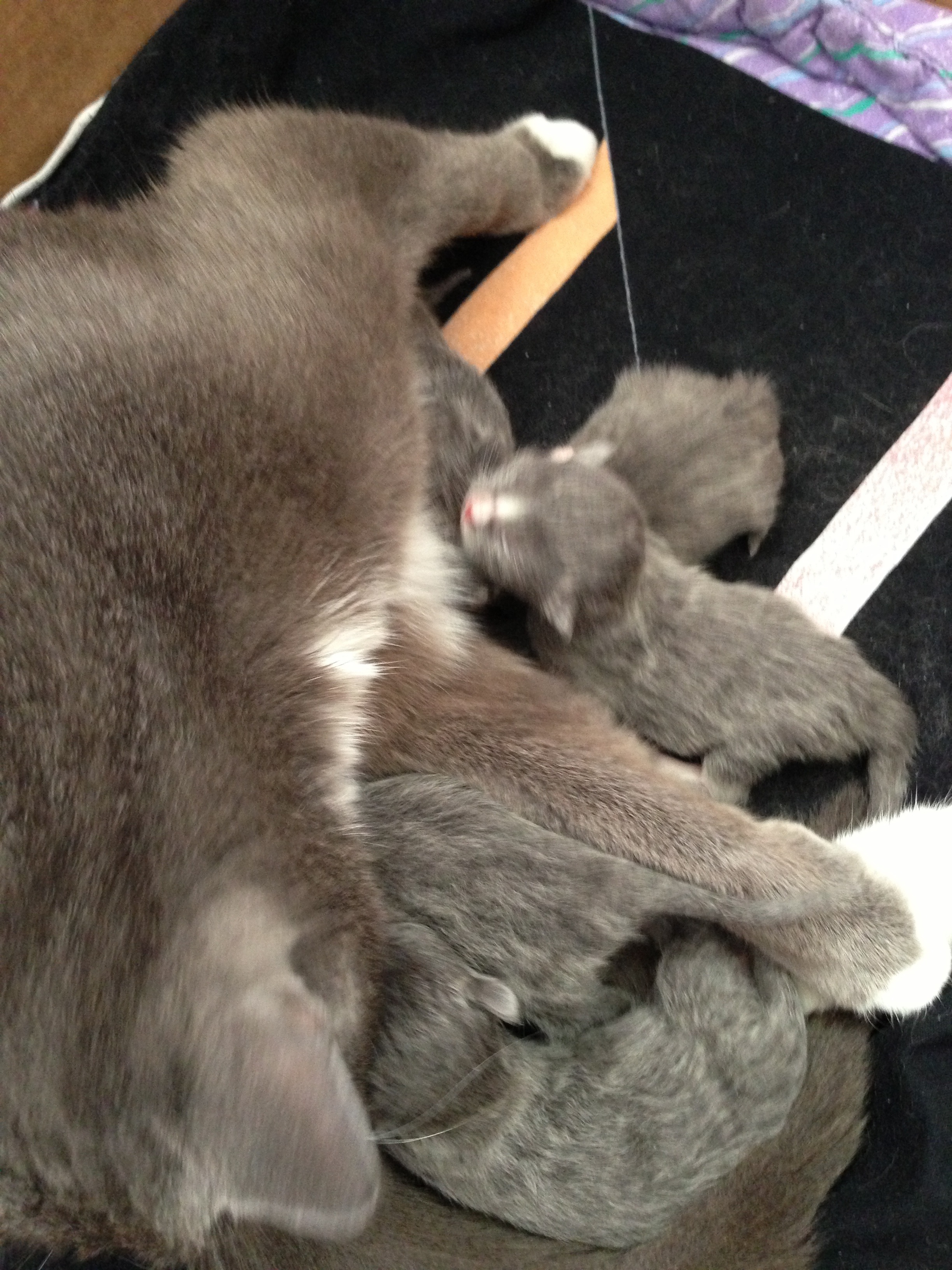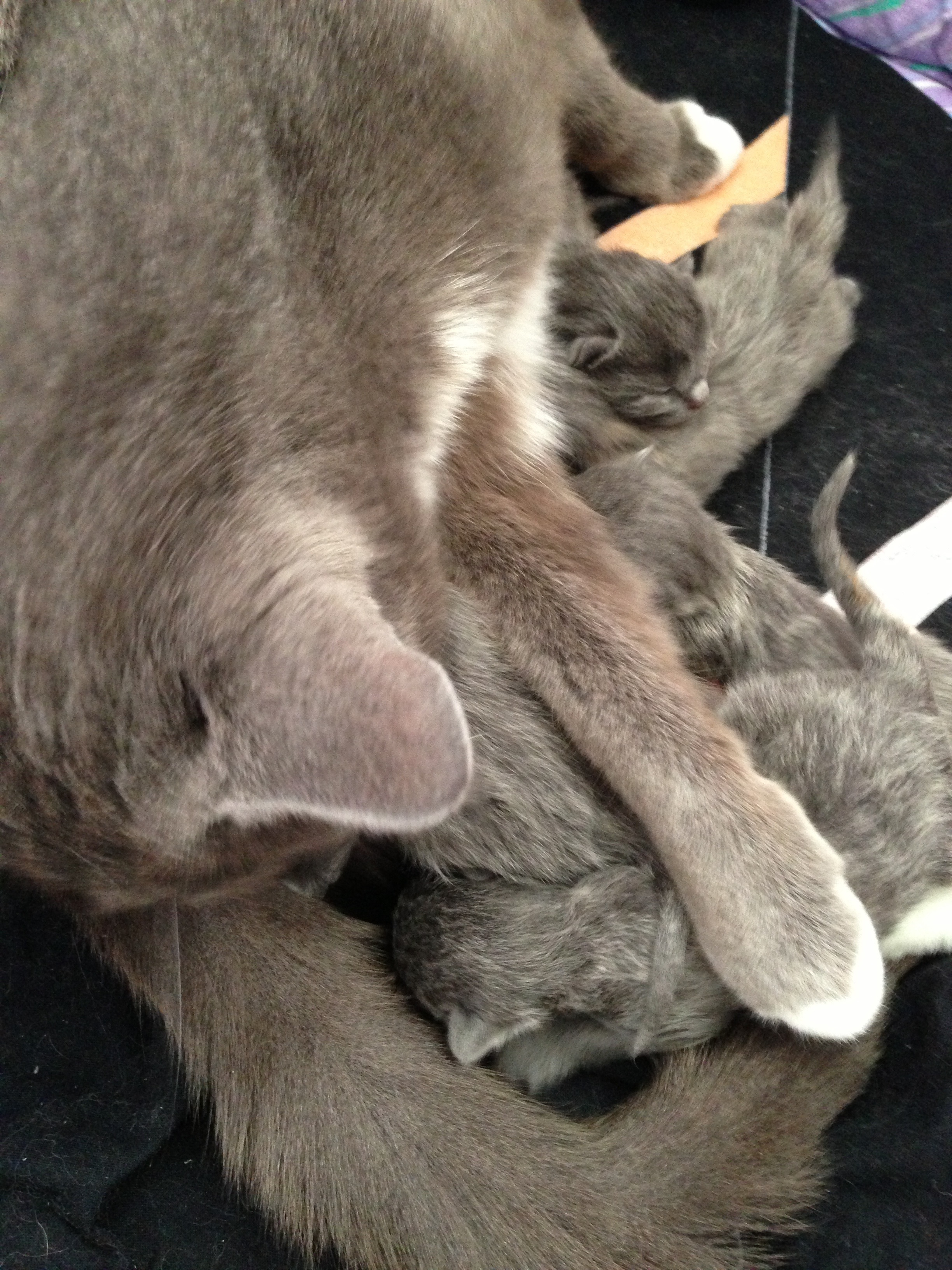Innan vi kom hem så svängde vi upp hos mina kusiner :p dom har precis fått kattungar!!!!! Fem stycken gråa friska och fina bebisar<3 så himla söta<3