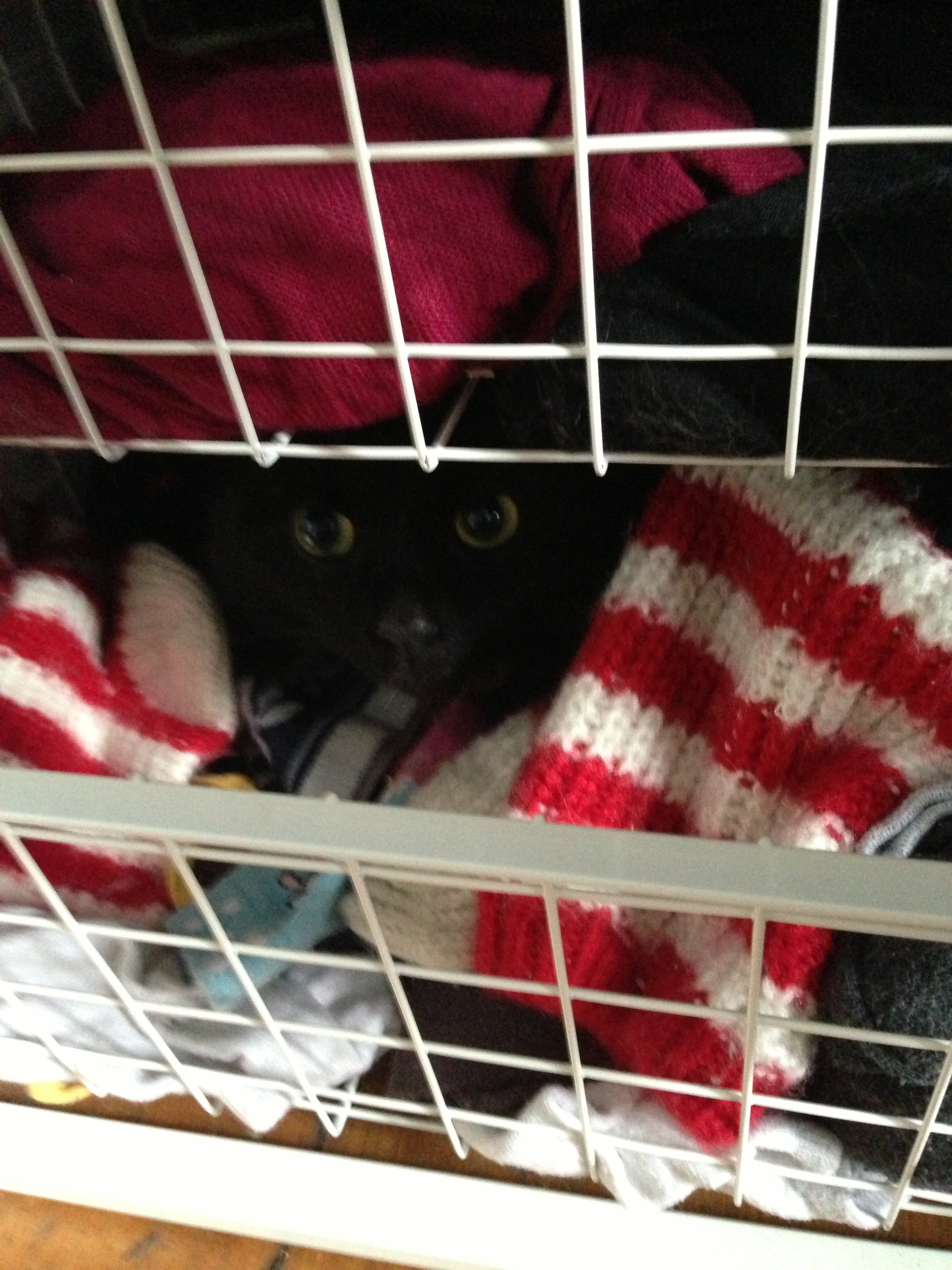 Hehe Oozo har fått för sig att sova i min trådback.. Längst ner som tur är iallfall 😉 hehe hon är så liten å spinkig så hon får plats att bara krypa mellan 😉
