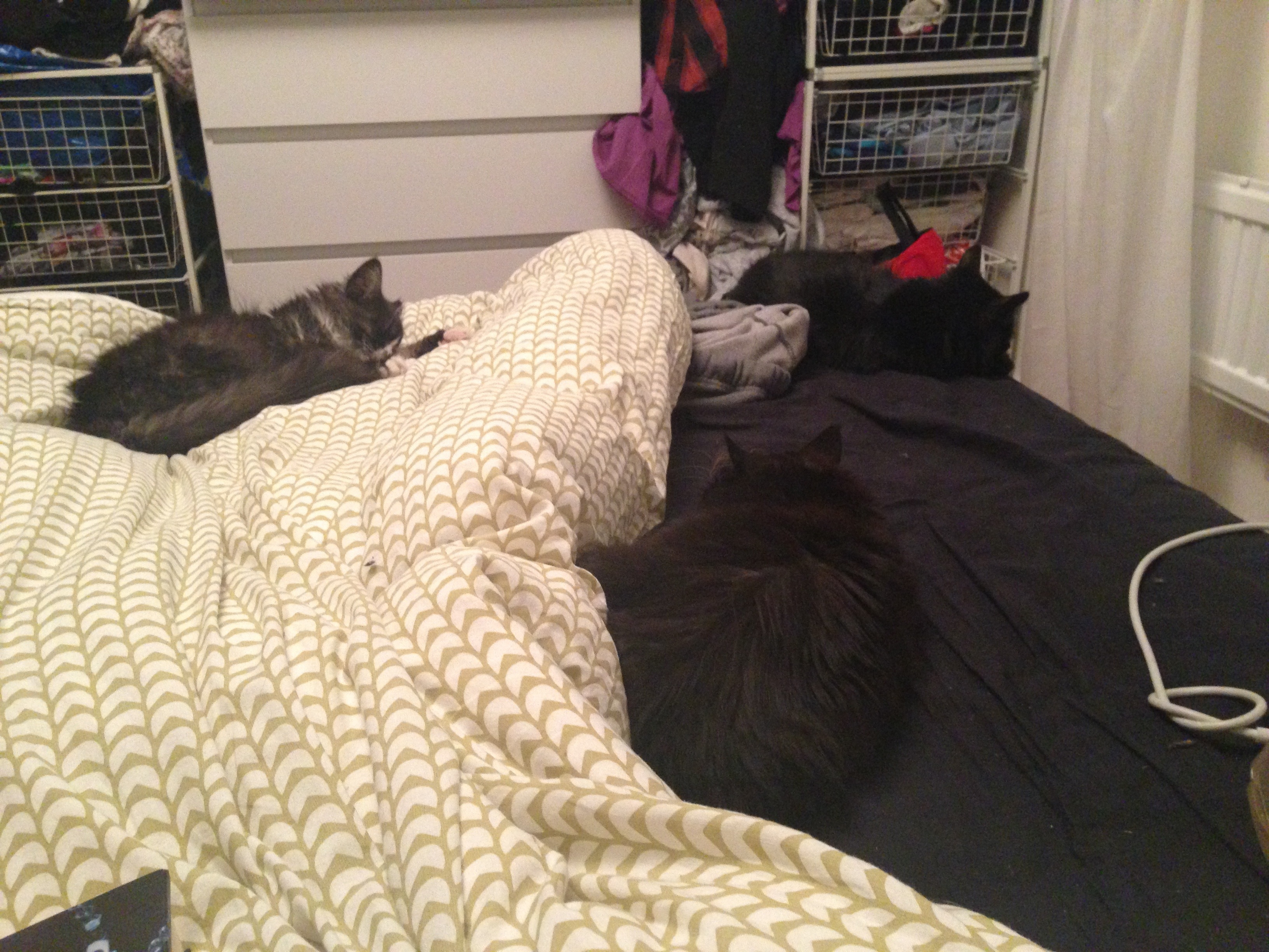Hehe och jag har alla tre katter i sängen som vanligt ^^,<3 sååååå mysigt<3