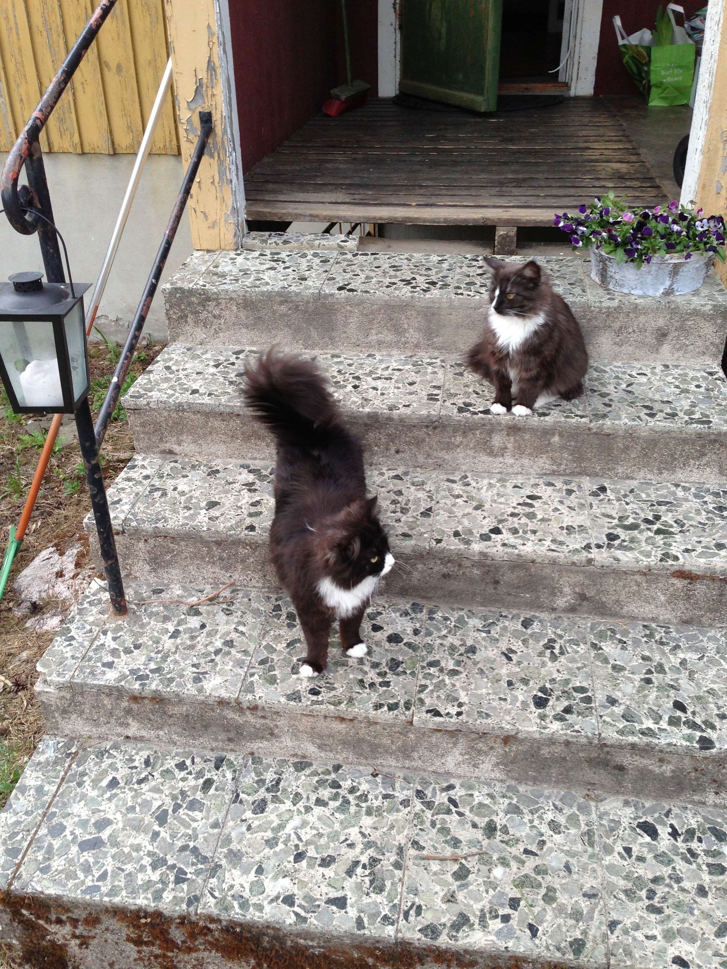 Påvägen in nu var jag tvungen att locka in Stella men grejen va ju den att hon satt i ett av mina enorma träda här på tomten å kom inte ner 🙁 hon va minst fem meter upp och bara satt å jama 🙁