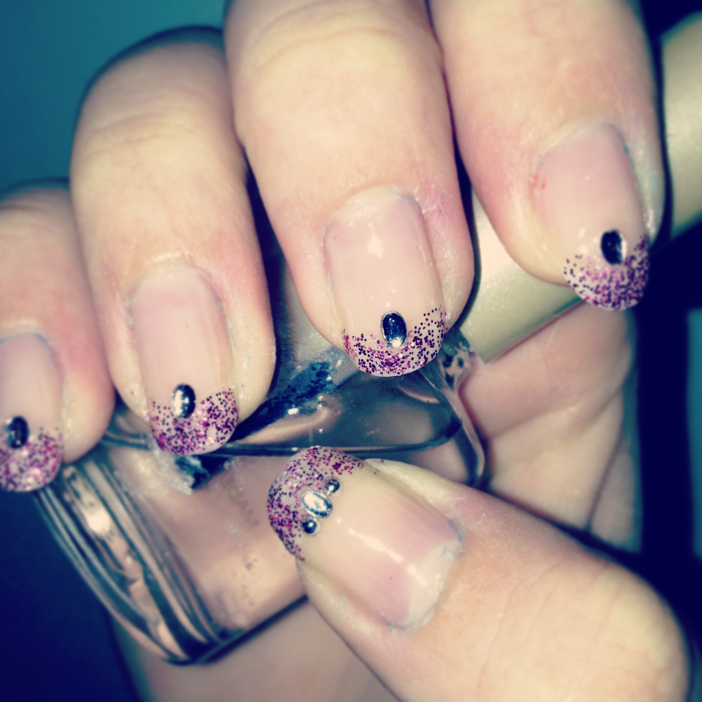 Jag målade naglarna och Joanna satte dit fina stenar 🙂