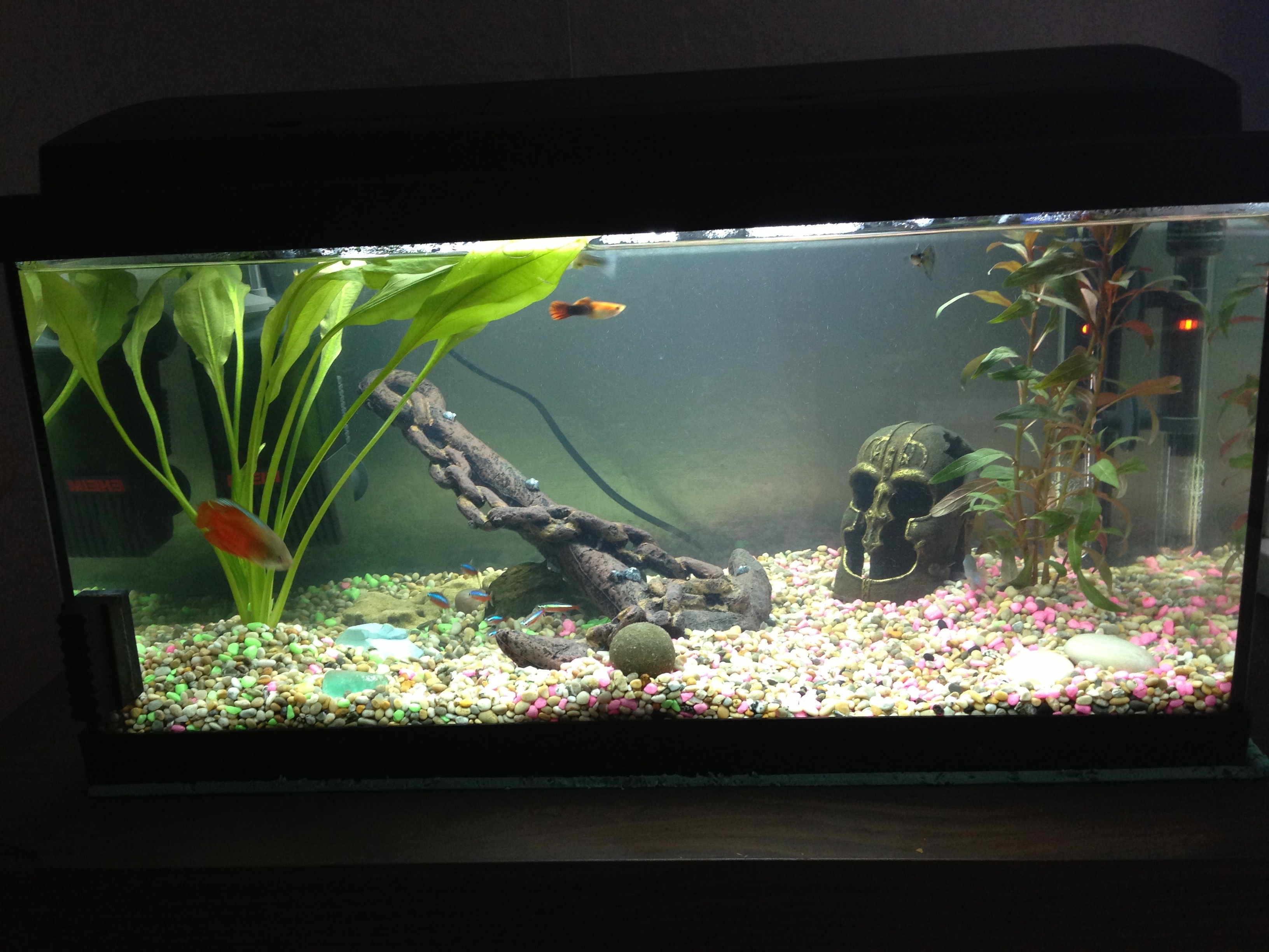 Nu sitter jag i soffan och myser lite 🙂 sitter och dricker teé och kollar på tv. Idag är akvariumet rent och fint! Så himla nöjd med hur det ser ut! Det har kostat en del eftersom jag hade sån jävla otur men men.. Nöjd är jag iaf och det är så fiiiiiiiiiint!!! På bild ser det väll inte så mycket ut men på riktigt så är det verkligen helt fantastiskt!!!