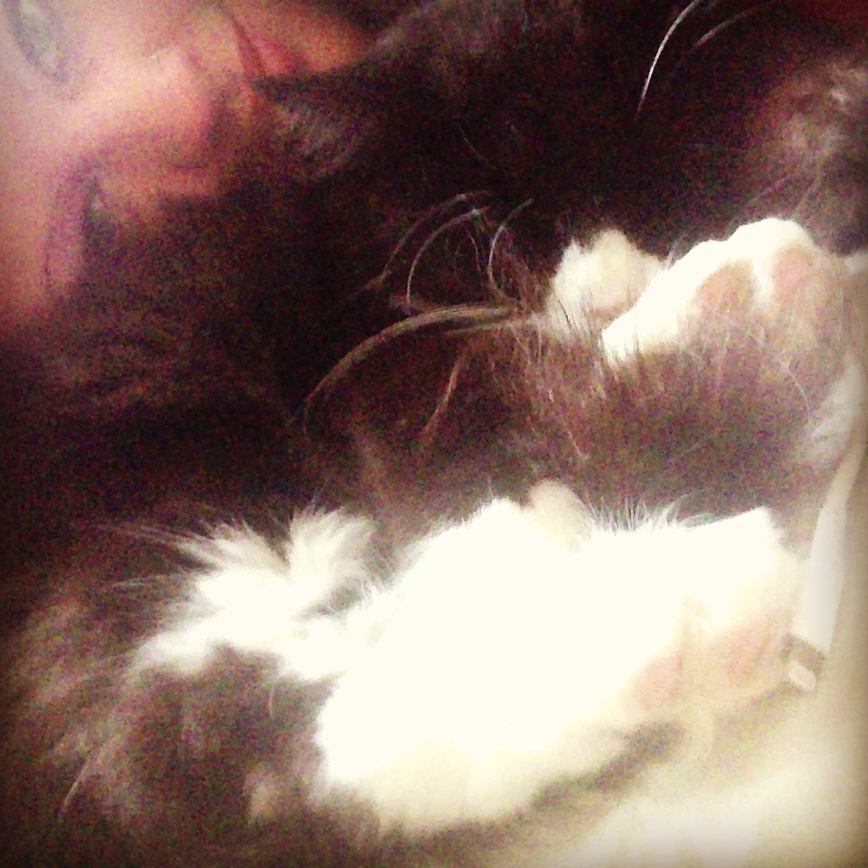Stella har sovit med mig i sängen inatt<3 så himla mysigt<3 Stella luktar så gott så det känns så avkopplade och lugnande att lägga huvudet på hennes mage och höra henne kurra och andas in henne ^^,<3 hon luktar liksom hem, varm, skog, regn<3 hon är min lilla bebis<3