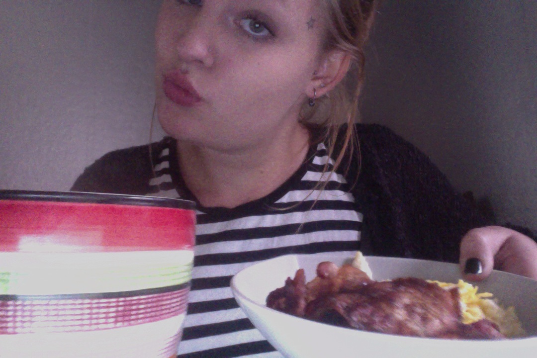 Nu sitter jag i soffan och tänkte slå på en film medans jag äter lite ägg och bacon och dricker största koppen tée 😉 MUMS! Samuel kommer bli sen idag men det gör inget, vädret är så äckligt att jag har faktiskt inget emot att bara ligga helt själv under värmefilten och kolla på någon dålig film 😉